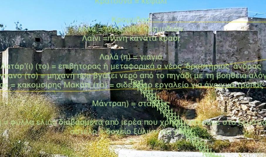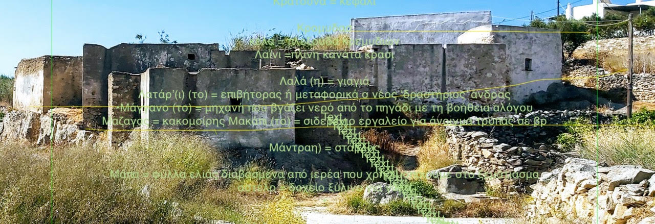 Η Μαρία Σιδέρη είναι performer και ερευνήτρια. Με βασικά υλικά τον ήχο, τη φωνή και τη σωματικότητα και μέσα από διαφορετικές μεθόδους έρευνας, το έργο της εστιάζει στις αναπαραστάσεις του σώματος μέσα από την αρχειακή έρευνα. Σε μια ομιλία-performance γύρω από την εξαφάνιση των λέξεων, στήνει την κονσόλα της σε ένα τραπέζι στο προαύλιο της Αγροτολέσχης, όπου τα παιδιά του νησιού διδάσκονταν άλλοτε βοτανολογία και εκμάθηση φυτέματος, μπολιάσματος, κλαδέματος. Στο «σακίδιό» της έχει πολλές λέξεις: στιβάρι, σπαγάκι, αντράλικας, αγούδουρας, ρωγός, απαλωνιά, ξεγαρίζω, πινακωτή, απαλωνιά, σφιχταρόλια…Κάποιες δανεικές από τον κύριο Νίκο Τζιώτη που της μίλησε για τα ξανανιωτά και τη δανεική, λέξεις ταυτισμένες με την ανταλλαγή καρπών αλλά και υπηρεσιών και δεξιοτήτων στο πλαίσιο της τοπικής αγροτικής οικονομίας. Στην περφόρμανς-διάλεξη «γύρω από την εξαφάνιση των λέξεων» αναζητά τις λέξεις που χάνονται αλλά και την πιθανή συμμετοχή μας.