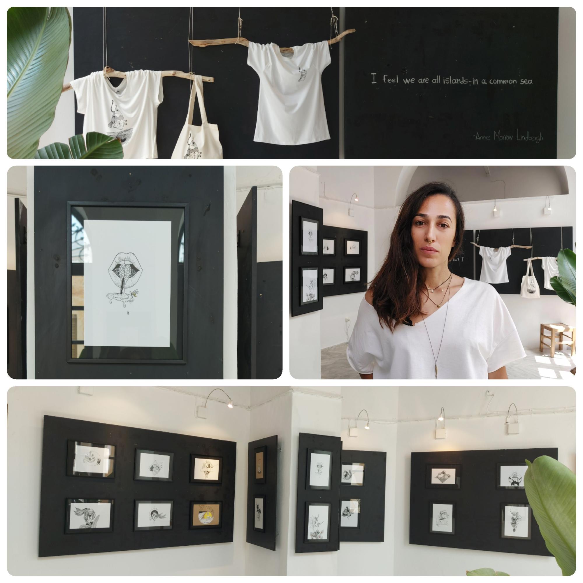 Όπως χαρακτηριστικά αναφέρει η ίδια και στην παρουσίαση της έκθεσης: “Μοναδική πηγή έμπνευσης, οι φυσιολογικές εκφάνσεις του ανθρώπινου ψυχισμού. Αγάπη, λύπη, θυμός, μίσος, φόβος, άγχος, αποστροφή είναι βασικά συναισθήματα που κυριαρχούν στα έργα μου. Μέσα από τις γραμμές το μαύρο χρώμα και την προοπτική, δημιουργώ χώρους, φιγούρες και καταστάσεις, παράγοντας παράλογους και αμφίθυμους χαρακτήρες, διφορούμενες και σουρεαλιστικές ατμόσφαιρες, με προσωπική και φρέσκια προσέγγιση. Δεν χρησιμοποιώ κείμενο στα έργα μου, γιατί πιστεύω ότι πρέπει να αφήνω στον θεατή να δημιουργήσει τα δικά του νοήματα, καταφέρνοντας έτσι να ξεπεράσει την εικονογραφική περιγραφή και την αφηγηματική αναπαράσταση του εικονογραφικού στοιχείου του έργου”
