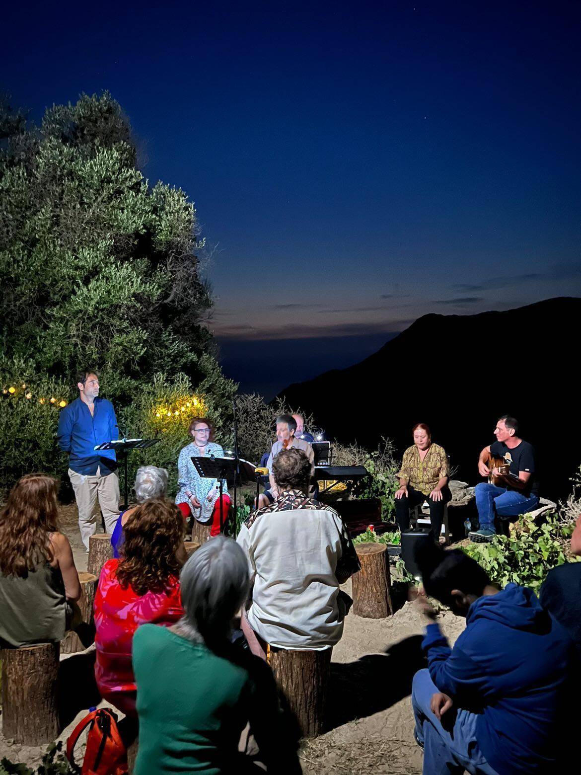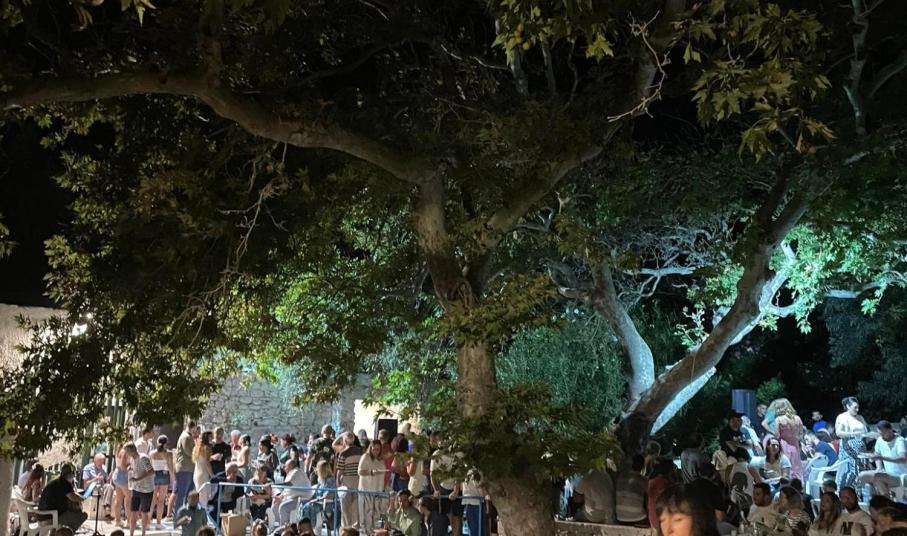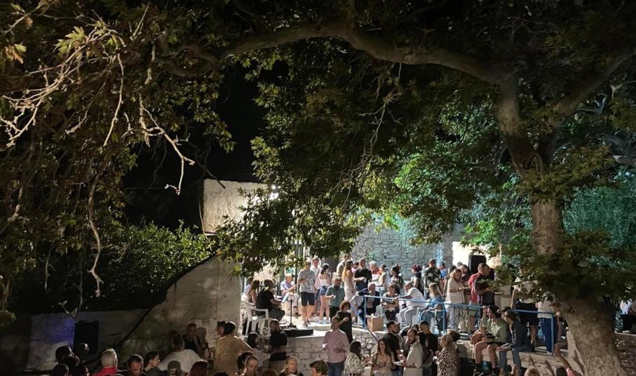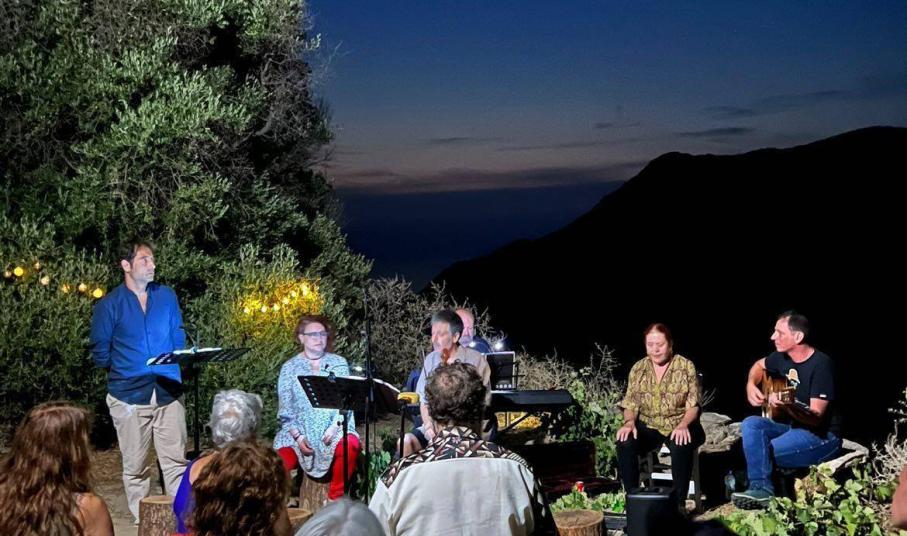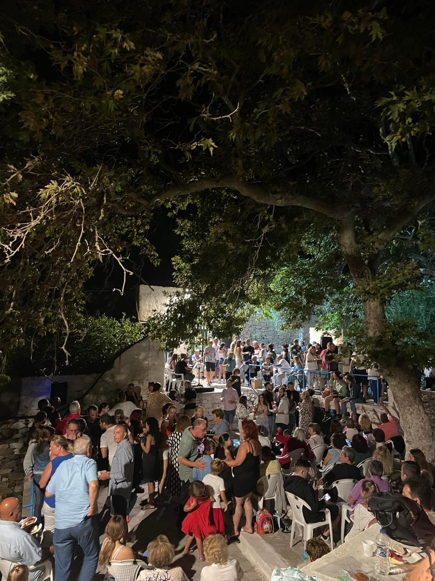 Στο κτήμα Πομόνια, στην Απάνω Μεριά, επίσης το βράδυ του Σαββάτου, το συριανό συγκρότημα Ώτα Ακούειν, έδωσε μια ακόμα συναυλία φέρνοντας μια μικρή ομάδα ανθρώπων στον υπέροχο αυτό χώρο για να απολαύσουν τα χρώματα του ηλιοβασιλέματος. Μουσική και ποίηση, ακούστηκαν κάτω από τον έναστρο ουρανό, σε ένα ρομαντικό σκηνικό που επικρατεί η πέτρα και το ξύλο, σε απόλυτη σύμπνοια με το φυσικό τοπίο. Ο Μιχάλης Λαμπρίδης (πιάνο, φωνή), ο Αλφρέδος Δελιβέρτης (ακουστική κιθάρα, φωνή), ο Ανδρέας Πολίτης (βιολί, φωνή), η Ρένα Βέργου (φωνή), η Αγγελική Κοκκίνη (φωνή) και ο Γιώργος Ρουσσάκης (ανάγνωση κειμένων), με τις φωνές και τις μελωδίες τους, δημιούργησαν μια κατανυκτική ατμόσφαιρα η οποία κορυφώθηκε όταν πλέον το φως έδωσε τη θέση του στο σκοτάδι.
