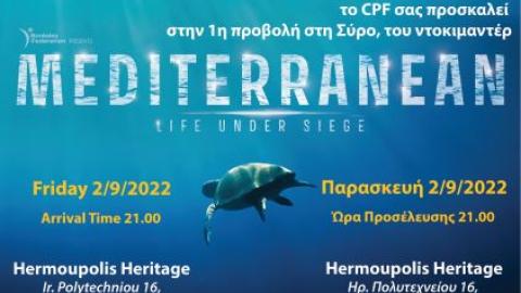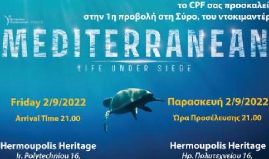 Με αφορμή τα 5 χρόνιας δράσης του στις Κυκλάδες, το Cyclades Preservation Fund (CPF) μας προσκαλεί στην προβολή του ντοκιμαντέρ «ΜΕΣΟΓΕΙΟΣ- ΠΟΛΙΟΡΚΗΜΕΝΗ ΘΑΛΑΣΣΑ» του Fred Fougea, που θα λάβει χώρα την Παρασκευή 2 Σεπτεμβρίου 2022 στο Hermoupolis Heritage (στο χώρο του Εργοστασίου Ζησιμάτου)