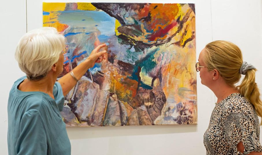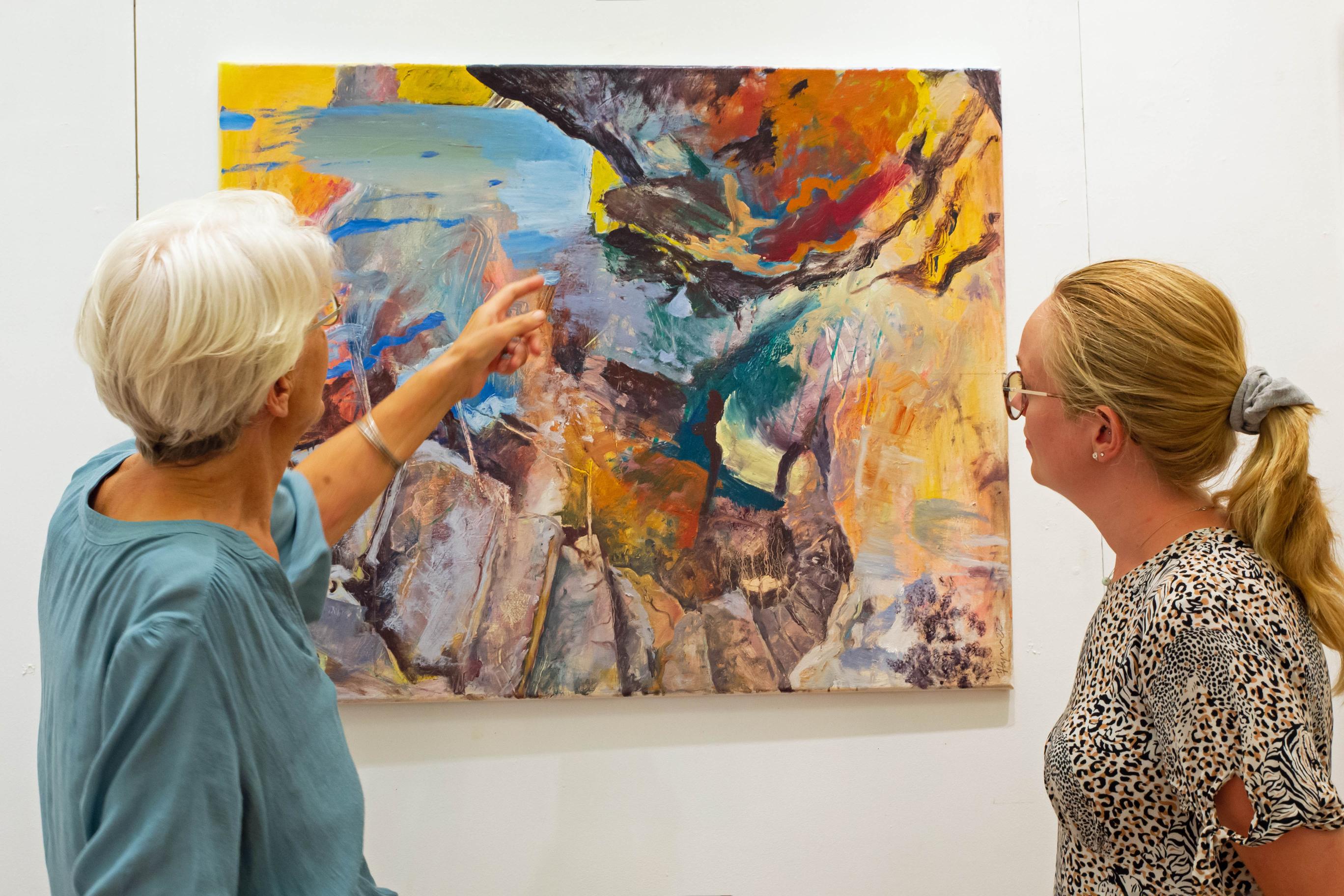 Following a well-attended opening night last evening - 03/09/22, the exhibition, entitled Land-Mark, of paintings by locally resident artist Janet Flynn, contiinues from 14.00-20.00, daily until 15th September at Tsiporina Mansion in Poseidonia. The vibrant paintings portray the artist's impression of the influence of people, technology and innovation on the beautiful landscape of Syros. Aegean light and colour sparkle from more than sixty works of art.