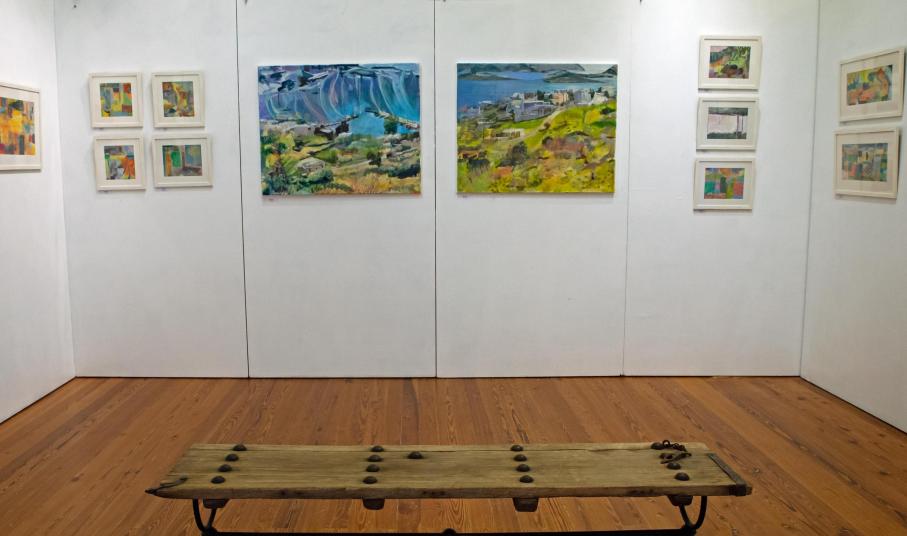The exhibition has been curated by Dubai gallerist, Sharon Harvey with technical support from Steve Hopewell. Special thanks to those who have encouraged and supported Janet to focus on developing a collection of paintings this year and in particular the staff from the Syros Culture and Arts department for suggesting this beautiful venue in Posidonia.