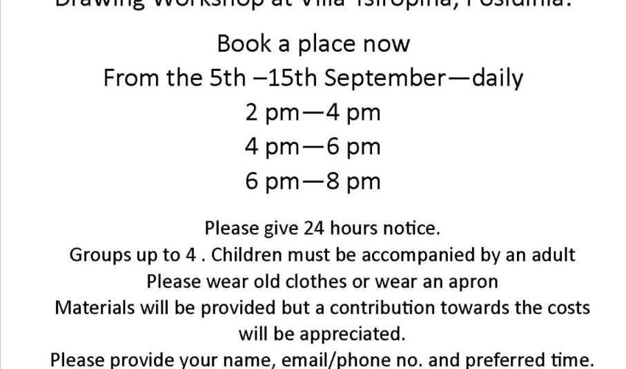 Janet is an experienced teacher and will be offering practical creative drawing workshops for those who would like to have a go. Materials will be provided. Teaching will be in English. Numbers will be limited to 8 per session. For further details and booking, contact: janet.flynn@flynnfineart.co.uk