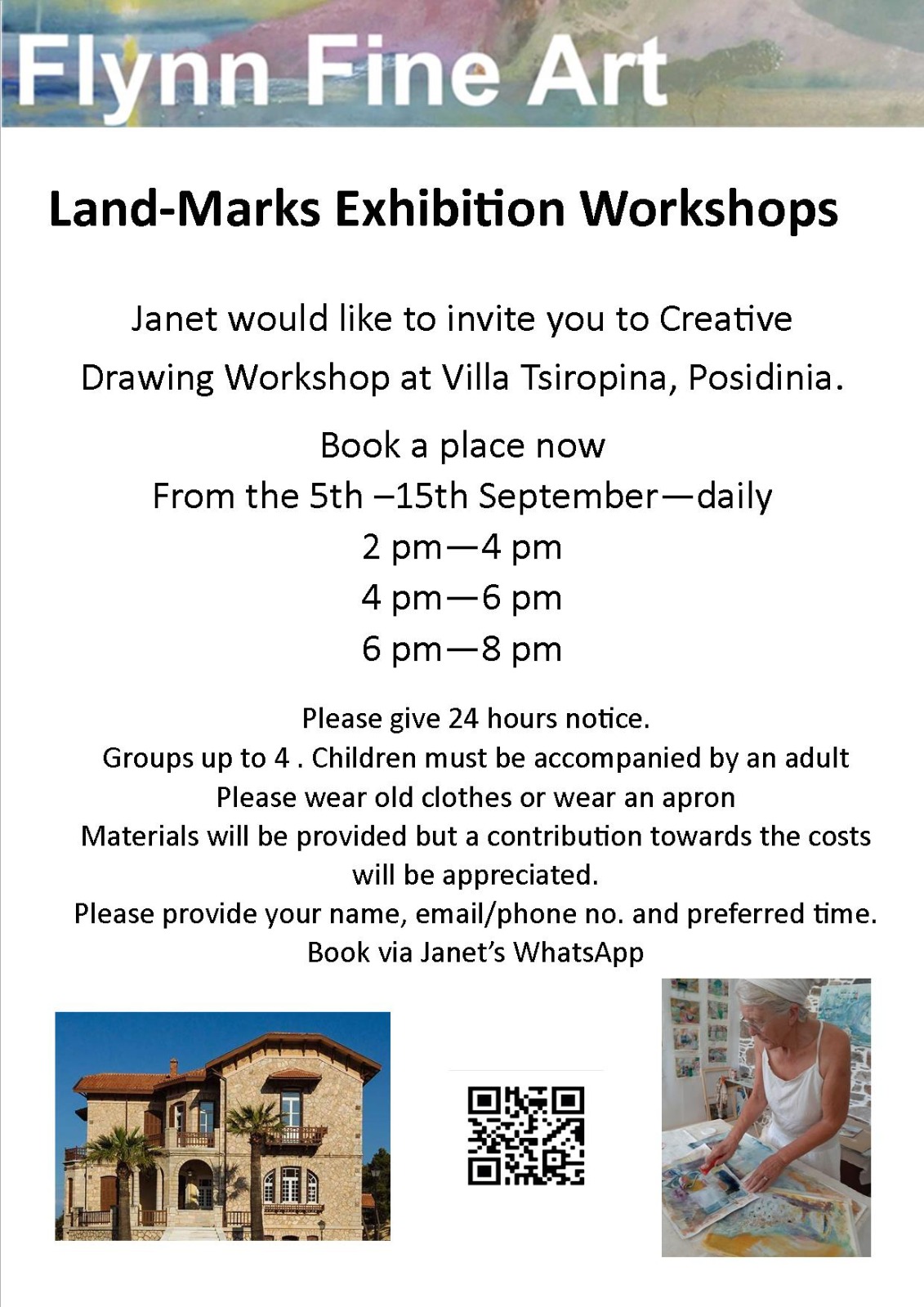 Μετά την επιτυχία της πρώτης βραδιάς στις 3/09/22 η έκθεση με τίτλο "Land-Mark" με έργα της Janet Flynn, καλλιτέχνιδος που ζει μόνιμα στη Σύρο, συνεχίζεται καθημερινά από 14.00-20.00 μέχρι τις 15 Σεπτεμβρίου στην Έπαυλη Τσιροπινά στην Ποσειδώνια.