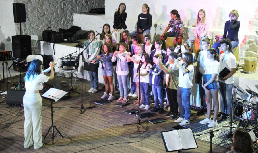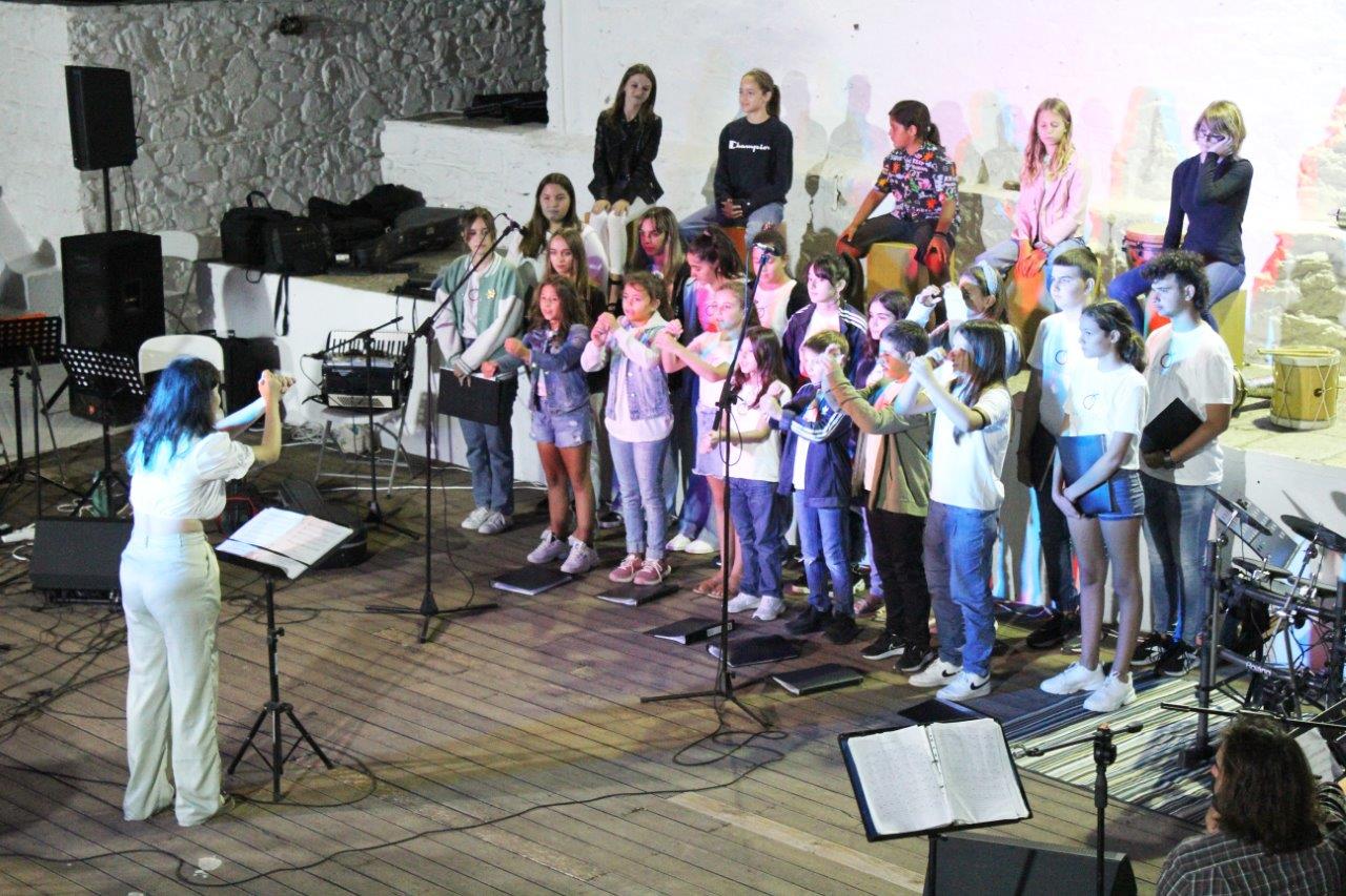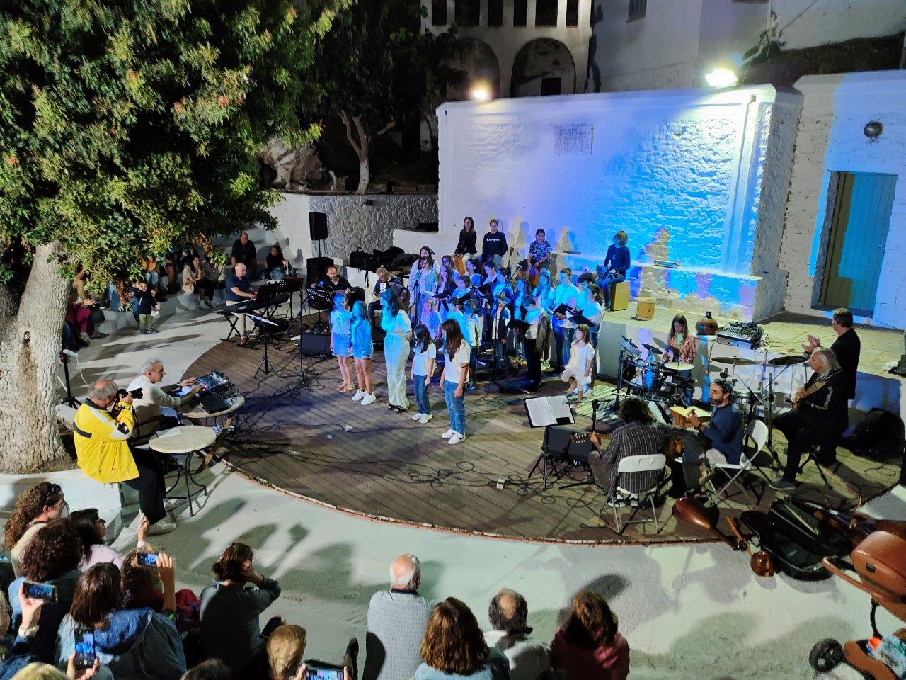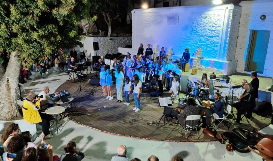 Μια εντυπωσιακή μουσική συνάντηση με πρωταγωνιστές παιδιά, πραγματοποιήθηκε στο θεατράκι της Δρυοπίδας Κύθνου, την Πέμπτη 8/9/22. Τα παιδιά του Μουσικού Εργαστηρίου Κύθνου, υποδέχτηκαν τα παιδιά της Παιδικής-Νεανικής Χορωδίας της Ορχήστρας των Κυκλάδων και έπαιξαν μαζί επί σκηνής, παρουσιάζοντας τραγούδια από το ελληνικό και διεθνές ρεπερτόριο.