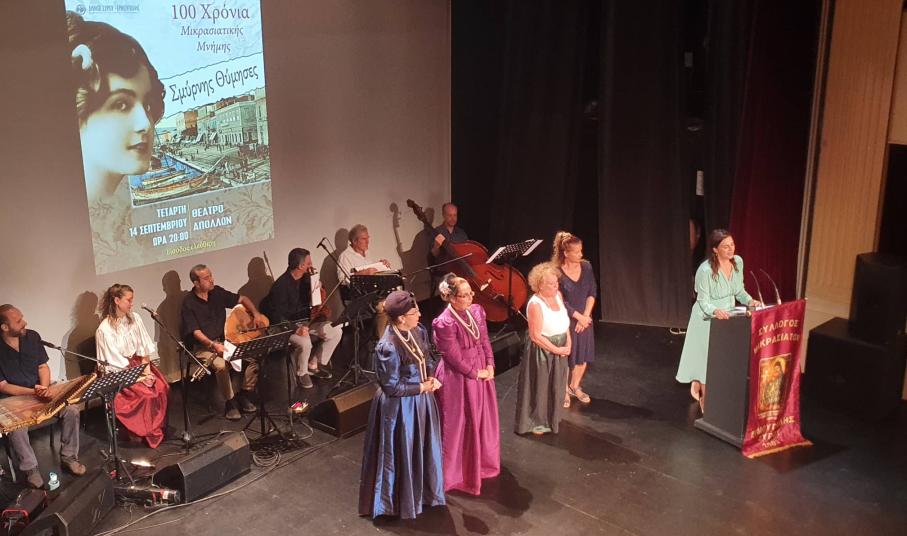 Την Τετάρτη, 14 Σεπτεμβρίου, ημερομηνία που έχει καθιερωθεί ως Ημέρα Εθνικής Μνήμης της γενοκτονίας των Ελλήνων της Μικράς Ασίας, πραγματοποιήθηκε η εκδήλωση “Σμύρνης θύμησες” από το σύλλογο Μικρασιατών Ερμούπολης Σύρου.