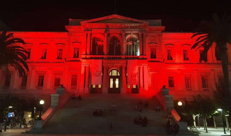 Η κα. Χαρδαλή, κλείνοντας την εκδήλωση ευχαρίστησε όλους όσους παραβρέθηκαν και ιδιαίτερα το Δήμο Σύρου Ερμούπολης που έκανε δεκτό το αίτημα του συλλόγου για τη φωταγώγηση του Δημαρχιακού Μεγάρου με κόκκινο χρώμα, το οποίο συμβολίζει “το αίμα που χύθηκε στα χώματα της Μικρασίας, το αίμα των προγόνων μας”, όπως χαρακτηριστικά είπε.