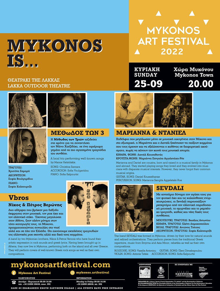 Mykonos Art Festival.... Μία παραγωγή του Πολιτιστικού Οργανισμού Π.Α.Κ.Ο. Γ. ΑΞΙΩΤΗΣ και του Δήμου Μυκόνου.