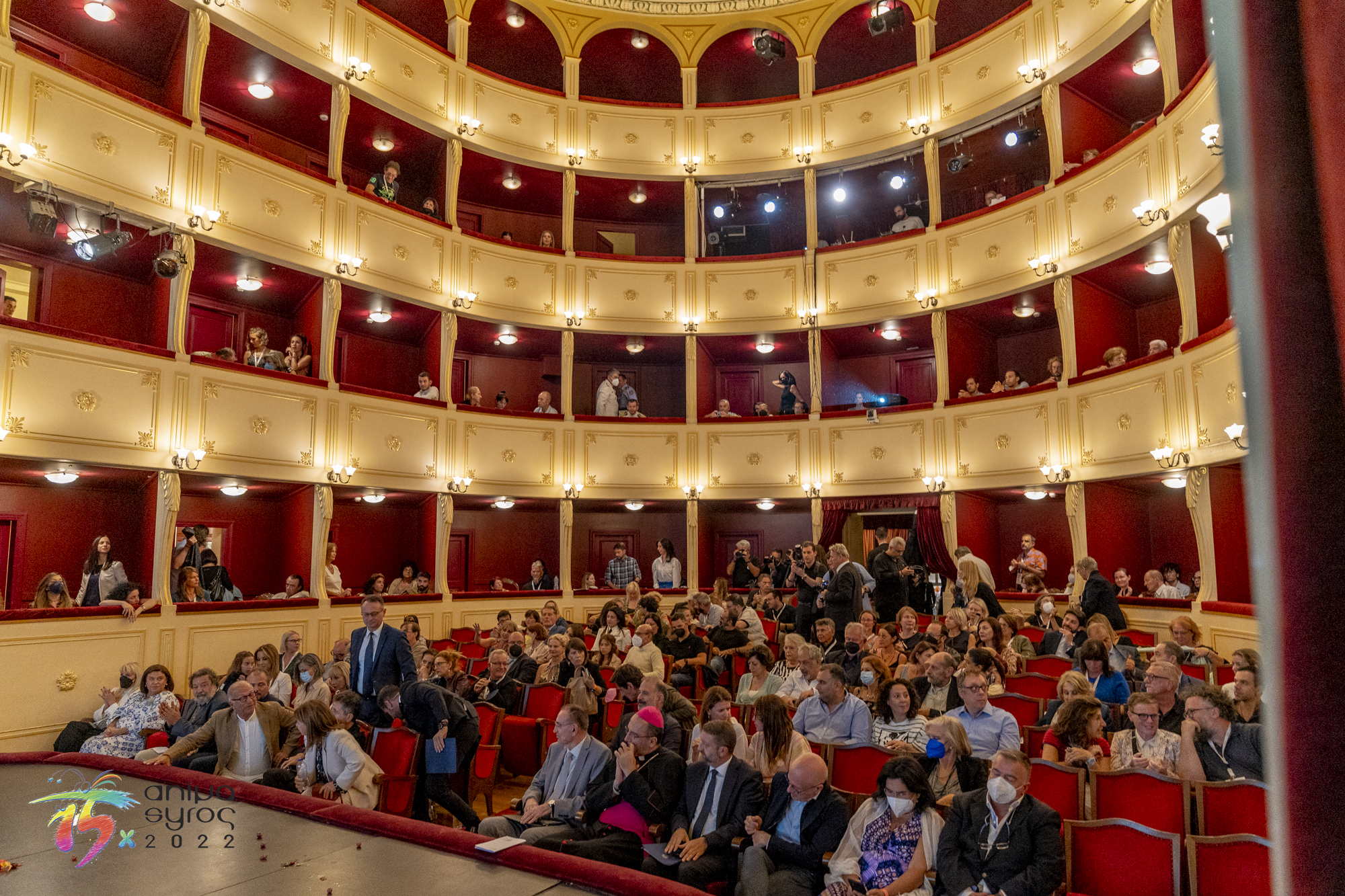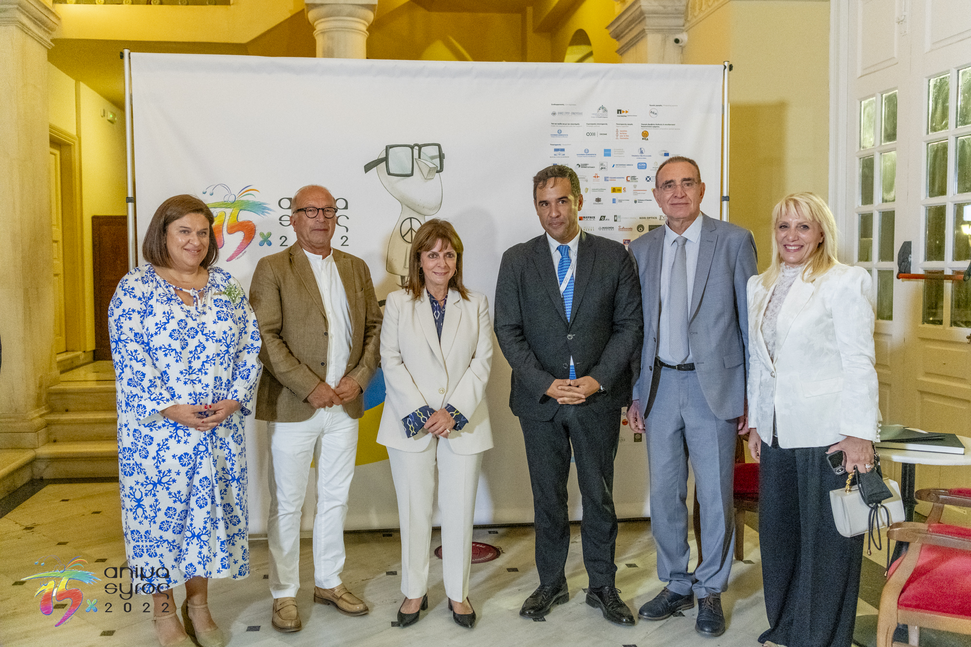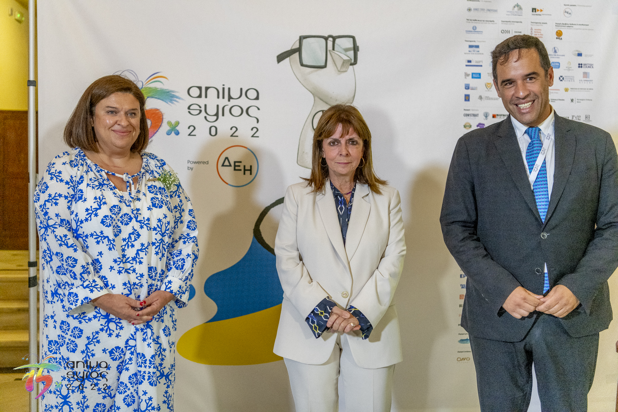 Στο κατάμεστο θέατρο Απόλλων, ανάμεσα στο πολυπληθές κοινό, απηύθυναν χαιρετισμό, ο Βουλευτής Κυκλάδων Φίλιππος Φόρτωμας, ο Γενικός Γραμματέας Ψηφιακής Διακυβέρνησης και Απλούστευσης Διαδικασιών Λεωνίδας Χριστόπουλος, ο Αντιπεριφερειάρχης Γιώργος Λεονταρίτης, ο Δήμαρχος Ερμούπολης Σύρου Νίκος Λειβαδάρας, ο οποίος απένειμε τιμητική πλακέτα στον Πρόεδρο του Animasyros Βασίλη Καραμητσάνη, ο Αντιπρύτανης του Πανεπιστημίου Αιγαίου Δημήτρης Παπαγεωργίου και ο Πρόεδρος και Διευθύνων Σύμβουλος του ΕΚΟΜΕ Πάνος Κουάνης, ενώ το παρών στην εκδήλωση μέσω διαδικτύου έδωσε και ο Υφυπουργός Πολιτισμού και Αθλητισμού αρμόδιος για θέματα Σύγχρονου Πολιτισμού Νικόλας Γιατρομανωλάκης. Στην εκδήλωση παρευρέθηκαν εκπρόσωποι της τοπικής αυτοδιοίκησης, διπλωματικών αποστολών, της Ιεράς Μητρόπολης Σύρου και θεσμικών φορέων.