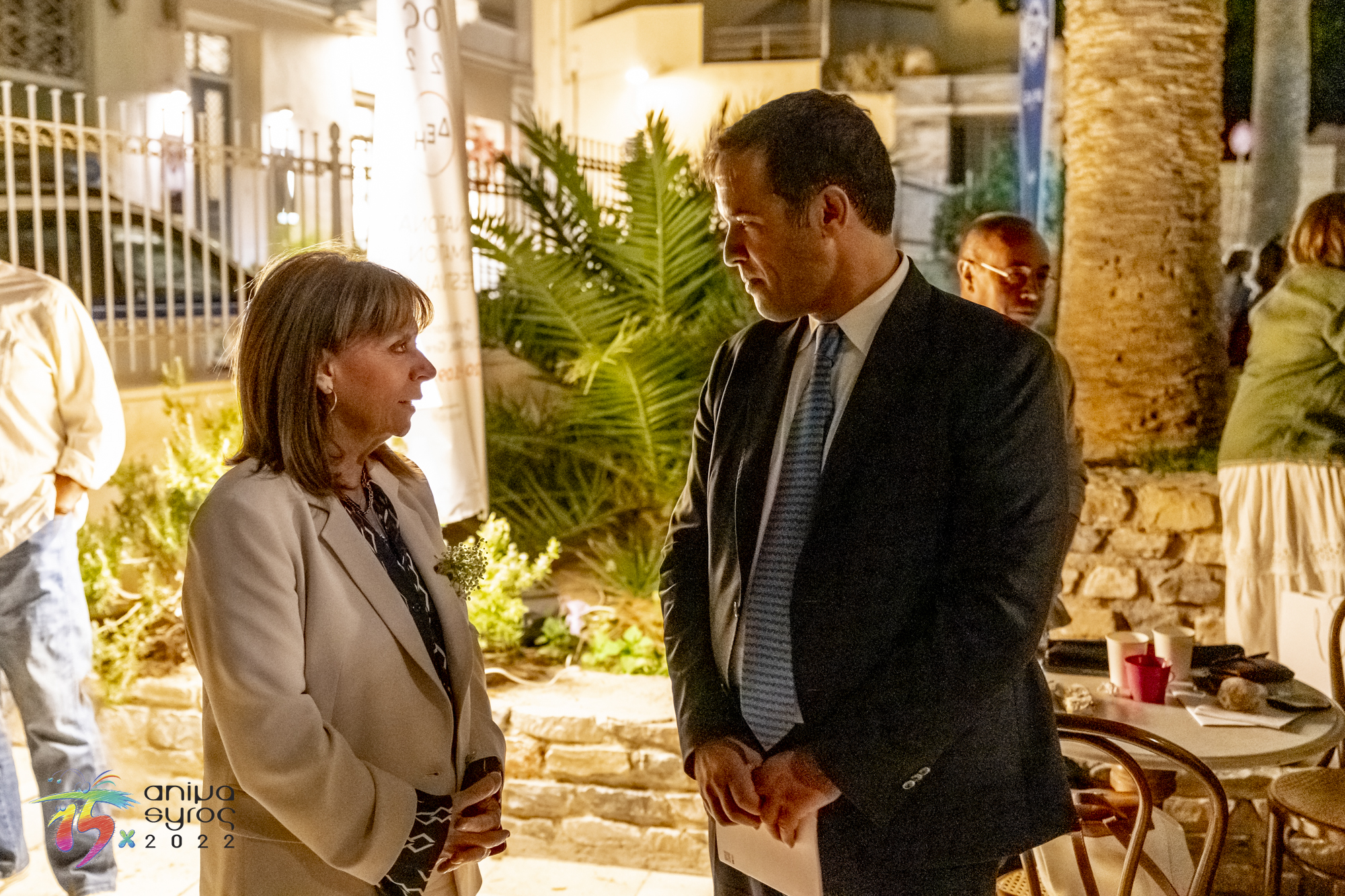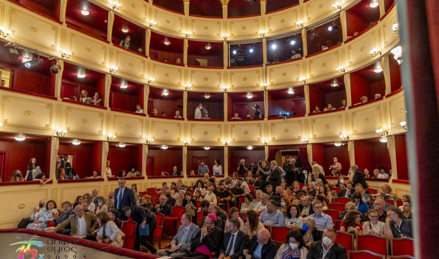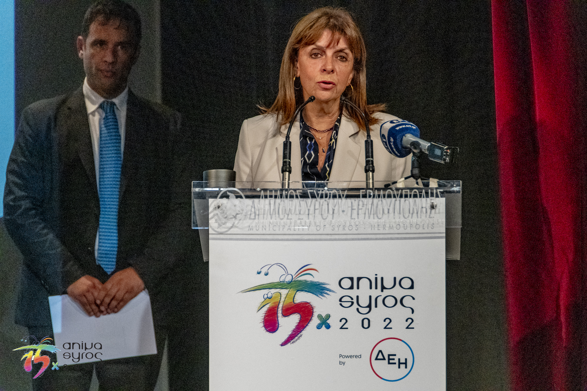 Στο κατάμεστο θέατρο Απόλλων, ανάμεσα στο πολυπληθές κοινό, απηύθυναν χαιρετισμό, ο Βουλευτής Κυκλάδων Φίλιππος Φόρτωμας, ο Γενικός Γραμματέας Ψηφιακής Διακυβέρνησης και Απλούστευσης Διαδικασιών Λεωνίδας Χριστόπουλος, ο Αντιπεριφερειάρχης Γιώργος Λεονταρίτης, ο Δήμαρχος Ερμούπολης Σύρου Νίκος Λειβαδάρας, ο οποίος απένειμε τιμητική πλακέτα στον Πρόεδρο του Animasyros Βασίλη Καραμητσάνη, ο Αντιπρύτανης του Πανεπιστημίου Αιγαίου Δημήτρης Παπαγεωργίου και ο Πρόεδρος και Διευθύνων Σύμβουλος του ΕΚΟΜΕ Πάνος Κουάνης, ενώ το παρών στην εκδήλωση μέσω διαδικτύου έδωσε και ο Υφυπουργός Πολιτισμού και Αθλητισμού αρμόδιος για θέματα Σύγχρονου Πολιτισμού Νικόλας Γιατρομανωλάκης. Στην εκδήλωση παρευρέθηκαν εκπρόσωποι της τοπικής αυτοδιοίκησης, διπλωματικών αποστολών, της Ιεράς Μητρόπολης Σύρου και θεσμικών φορέων.