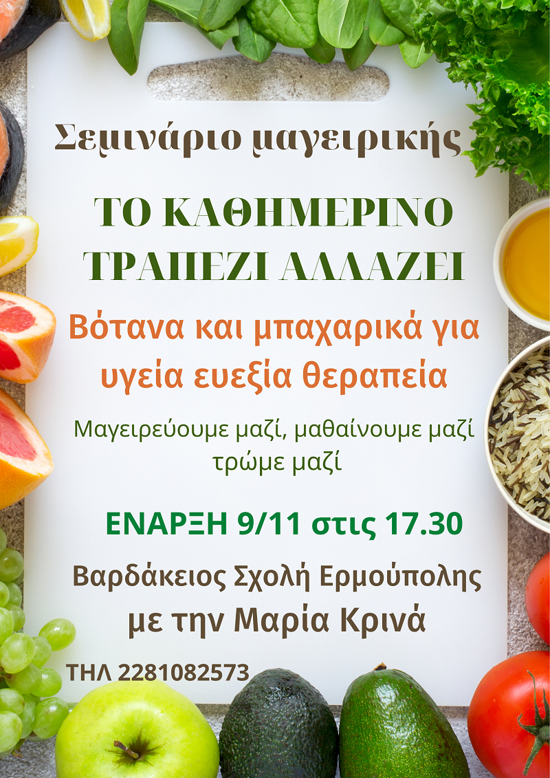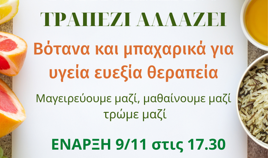 Θα μάθουμε κάποιες βασικές αρχές για να τρεφόμαστε πιο υγιεινά, με εποχιακά υλικά και άγρια βότανα, μπαχαρικά και χόρτα.