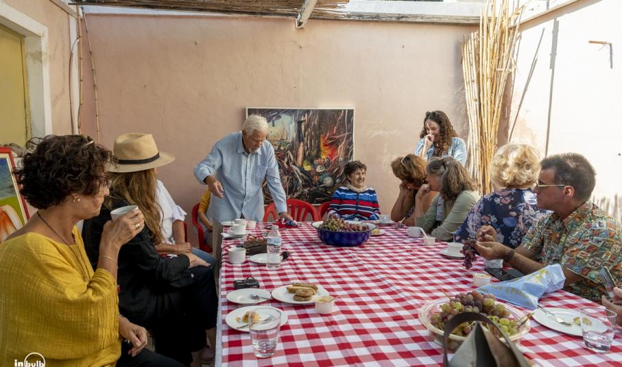 Οι ομάδες επισκέπτονται τους χώρους των καλλιτεχνών, ξεναγούνται, βλέπουν τα έργα τους, τις σημειώσεις τους, τα σκίτσα τους, τις συλλογές τους, συζητούν για τέχνη και γνωρίζουν σε ένα πιο προσωπικό επίπεδο τους δημιουργούς μέσα από ιστορίες και βιώματα που οι ίδιοι διηγούνται. Ενίοτε, ενδέχεται να προκύψουν και ευχάριστες εκπλήξεις όπως συνέβη στην επίσκεψη στο εργαστήριο του κ. Βαρβέρη ο οποίος, εκτός προγράμματος, έβγαλε τα υλικά του και ζωγράφισε έναν πίνακα από το μηδέν ενώ όλοι, όπως μας περιγράφει η συντονίστρια της δράσης, παρακολουθούσαν σιωπηλοί και γοητευμένοι. Στο τέλος των ξεναγήσεων, οι συμμετέχοντες κάθονται μαζί με τους καλλιτέχνες, απολαμβάνοντας κάποιο κέρασμα για το οποίο έχει φροντίσει η Hermoupolis Heritage και συζητούν για τη συγκεκριμένη εμπειρία. “Αυτή η αλληλεπίδραση και η έκθεση του καλλιτέχνη, δημιουργεί ένα αίσθημα εμπιστοσύνης και μία σύνδεση, η οποία νομίζω πως δεν αφορά μόνο ένα εξειδικευμένο κοινό. Είμαστε ευγνώμονες που μας ανοίγουν τους προσωπικούς τους χώρους και παρατηρώ ότι όλοι φεύγουν με ένα χαμόγελο, σαν να νιώθουν ότι απέκτησαν έναν καινούργιο φίλο” λέει η Αγνή Ρούσσου.