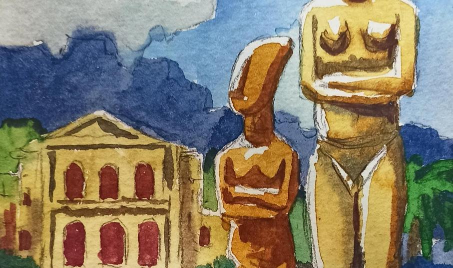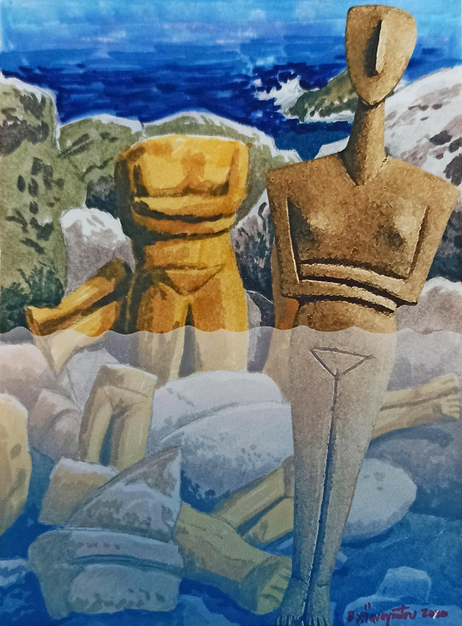 Με αυτόν τον τίτλο τιμά την αρχαία ιστορία των Κυκλάδων ο κ. Βασίλης Χατζηπαναγιώτου, συνταξιούχος εκπαιδευτικός και ερασιτέχνης ζωγράφος. Θα εκθέσει τα έργα ζωγραφικής με θέμα τα Κυκλαδικά ειδώλια στην αίθουσα Ροΐδη του Πνευματικού Κέντρου Ερμούπολης. Η έκθεση θα λειτουργεί Τρίτη, Πέμπτη, Σάββατο και Κυριακή και ώρες 6-9 μετά μεσημβρία. Η αίθουσα Ροΐδη είναι ακριβώς δίπλα στην αίθουσα, που πάρα πολλά χρόνια πριν και έως σήμερα, είναι το “Μουσείο αντιγράφων Κυκλαδικής Τέχνης”, το οποίο δημιουργήθηκε με την προσφορά της Ντόλλης Γουλανδρή, που είχε δημιουργήσει το θαυμάσιο “Μουσείο Κυκλαδικής Τέχνης” στην Αθήνα. Έχουν περάσει περίπου 35 χρόνια από τότε που σ’ αυτό το υπέροχο Μουσείο που δημιουργήθηκε, πέρασαν χιλιάδες παιδιά από τη Σύρο και από άλλες περιοχές της Ελλάδας και γνώριζαν την αρχαία ιστορία του Κυκλαδικού πολιτισμού. Σήμερα βρίσκονται στη Σύρο δύο αξιόλογοι πρώην δάσκαλοι, ο κ. Βασίλης Χατζηπαναγιώτου και η σύζυγός του Λουκία, που ήταν δάσκαλοι στην Καστοριά, στην Αθήνα... και φρόντισαν να επισκεφθούν τη Σύρο, που είχαν ακούσει άριστα σχόλια για το νησί, για τους ανθρώπους του και για το θαυμάσιο κλίμα του. Συνάντησαν δασκάλες και νηπιαγωγούς, ασχολήθηκαν με διάφορα μαθήματα των παιδιών και προσέφεραν και τις δικές τους γνώσεις. Είχαν και έχουν πάντα άριστες προτάσεις και επιθυμία να προσφέρουν ειδικά μαθήματα σε δασκάλες και νηπιαγωγούς για κάτι ιδιαίτερο. Στον κ. Βασίλη και στην κ. Λουκία αρέσει πολύ η Σύρος και ζουν εδώ αρκετό καιρό. Ο κ. Βασίλης, εκτός από δάσκαλος, ιδιαίτερα θαύμασε την αρχαία εποχή των Κυκλάδων και τα θαυμάσια ειδώλια... τα οποία μας τα παρουσιάζει ως άριστος ζωγράφος, και αναφέρει: