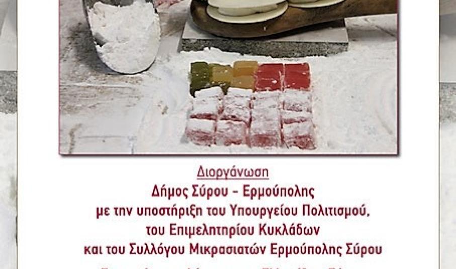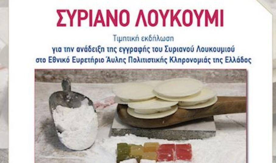 Τιμητική εκδήλωση, το Σάββατο 5 Νοεμβρίου, για την ανάδειξη της εγγραφής του Συριανού Λουκουμιού στο Εθνικό Ευρετήριο Άυλης Πολιτιστικής Κληρονομιάς της Ελλάδος.