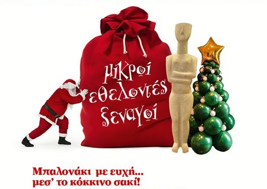 Το Σάββατο, 17 Δεκεμβρίου οι πόρτες της Έκθεσης Αντιγράφων Κυκλαδικής Τέχνης, θα παραμείνουν ανοιχτές από τις 10:00 έως τις 16:00 περιμένοντας τα μικρά παιδιά έως και 12 ετών να διασκεδάσουν σε ατμόσφαιρα γιορτινή μαζί με τους Μικρούς Εθελοντές Ξεναγούς. Τα παιδιά, θα παίξουν, θα ξεναγηθούν, θα ζωγραφίσουν, θα τραγουδήσουν, θα κεραστούν και θα γράψουν τη δική τους ευχή που θα κλείσουν σε μπαλόνι και θα τη ρίξουν στο κόκκινο σακί του Άι Βασίλη.