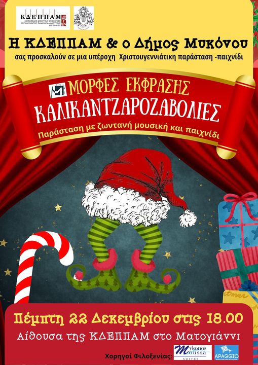 Η ΚΔΕΠΠΑΜ σας προσκαλεί στην παιδική Χριστουγεννιάτικη Παράσταση «Καλικανταροζαβολιές» αύριο στις 6μ.μ. στην αίθουσα στης ΚΔΕΠΠΑΜ.