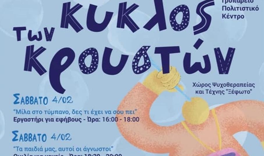 Στις 4 και 5 Φεβρουαρίου, η δράση “Ο κύκλος των κρουστών” που αναβλήθηκε το προηγούμενο τετράμηνο επανέρχεται με βιωματικά εργαστήρια και ομιλίες για τις σχέσεις γονέων και παιδιών, στο χώρο Ψυχοθεραπείας και Τέχνης “Ξέφωτο”.