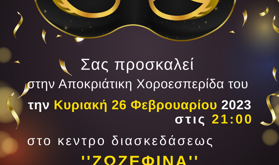 Αποκριάτικη χοροεσπρίδα διοργανώνεται την Κυριακή 26 Φεβρουαρίου από τον Επιμορφωτικό Φιλοτεχνικό Σύλλογο Φοίνικα Σύρου.