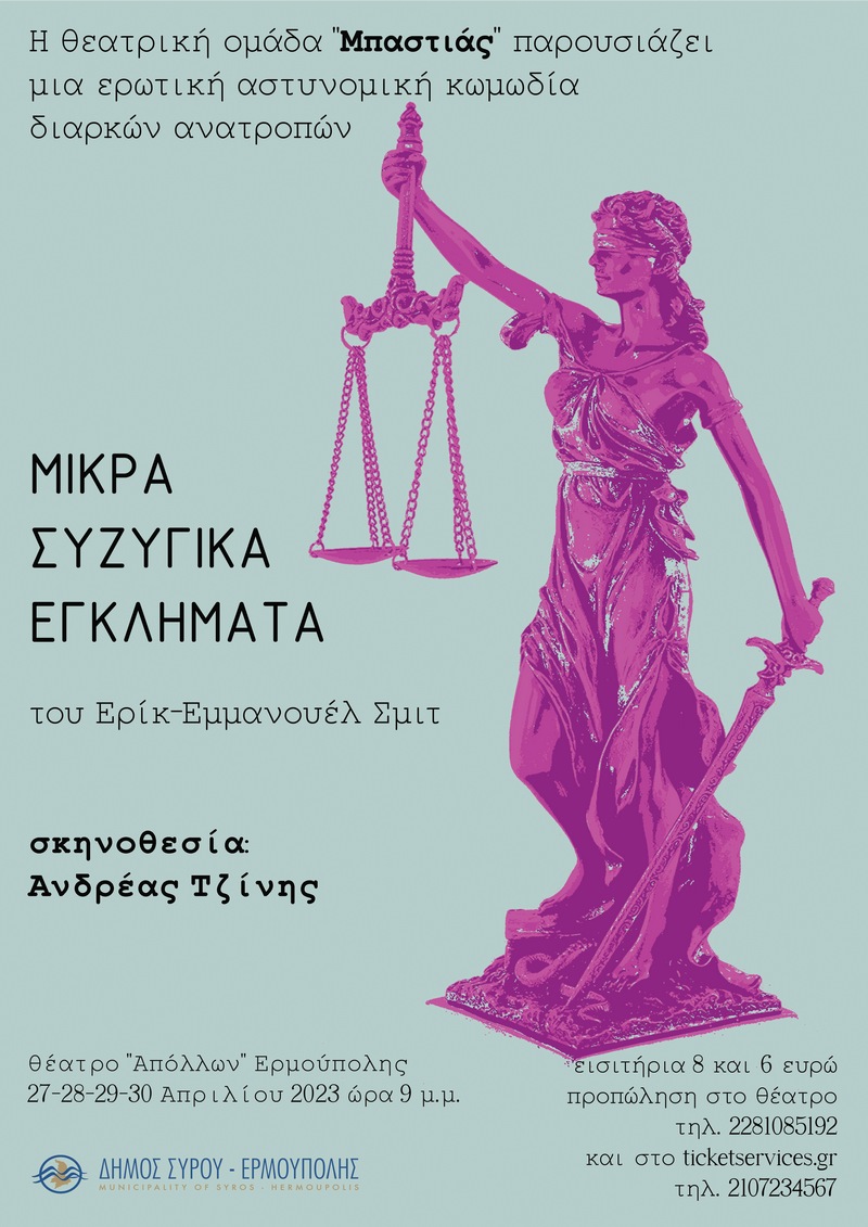 Η θεατρική ομάδα "Μπαστιάς", σήμερα και μέχρι την Κυριακή 30 Απριλίου παρουσιάζει στο θέατρο Απόλλων την ομώνυμη θεατρική παράσταση διασκευασμένη από τον σκηνοθέτη Ανδρέα Τζίνη.