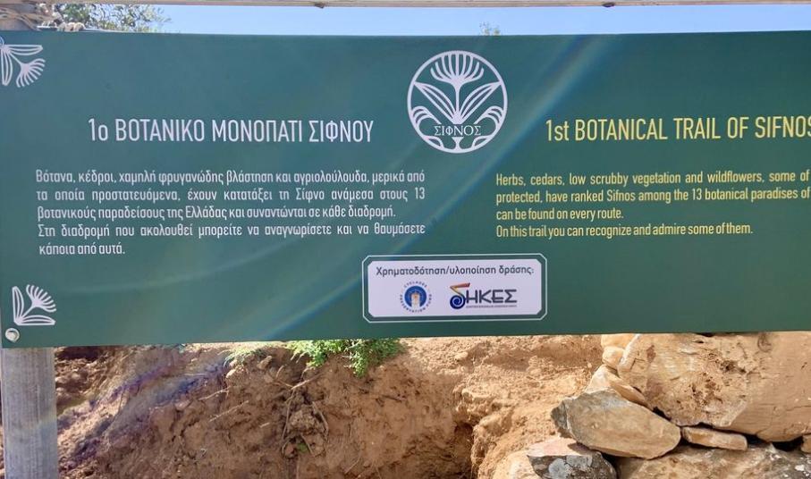 Η ιδέα που αφορούσε στην καταγραφή, ταυτοποίηση και σηματοδότηση φυτών και βοτάνων που υπάρχουν πάνω στο μονοπάτι που αρχίζει από Φυρόγια και καταλήγει στον Ταξιάρχη της Σκάφης-μήκους περίπου 2 χιλιομέτρων, σχεδιάστηκε όλο το διάστημα που μεσολάβησε, σε συνεργασία με τη βιολόγο κ. Ράνια Παπακώστα, τον γεωπόνο κ. Νικηφόρη Κάραβο, τον κ. Μάριο Λέβι που ασχολείται με την περμακουλτούρα στη Σίφνο και τον φωτογράφο κ. Χρήστο Ασημακόπουλο. Η δράση πραγματοποιήθηκε με την αρωγή των εκπαιδευτικών Σοφία Σκυλίτση και Σωτήρη Μητσιάκο, και τη συμμετοχή τωμ μαθητών και μαθητριών της Στ’ τάξης του Δημοτικού Σχολείου Σίφνου οι οποίοι/ες τοποθέτησαν μικρές καλαίσθητες πινακίδες στα φυτά ώστε να μπορούν να τα αναγνωρίζουν οι περιπατητές του πολυσύχναστου μονοπατιού που βρίσκεται μέσα στην περιοχή Νατούρα 2000 της Σίφνου και οδηγεί σε αρκετούς διαφορετικούς προορισμούς (Άγιο Ανδρέα, Προφήτη Ηλία, Βαθύ, Τόσο Νερό, Παναγιά του Νήλιου, Μαύρο χωριό κ.α.). Στην αρχή του μονοπατιού τοποθετήθηκε μεγάλη επεξηγηματική πινακίδα και στην υπόλοιπη διαδρομή μικρότερες πινακίδες που απεικονίζουν το κάθε φυτό και αναφέρουν, την κοινή ελληνική, την λατινική και την τοπική ονομασία του.
