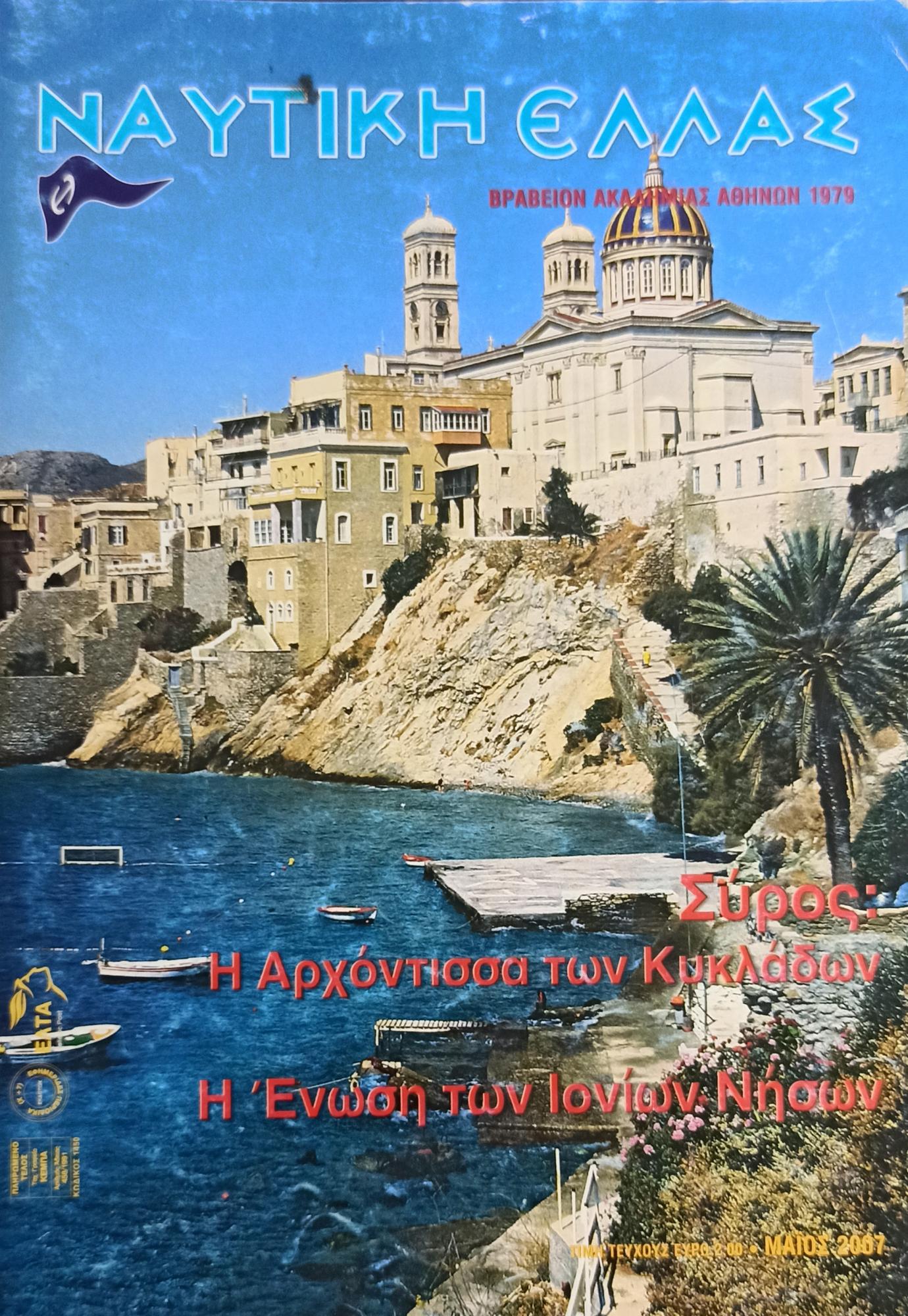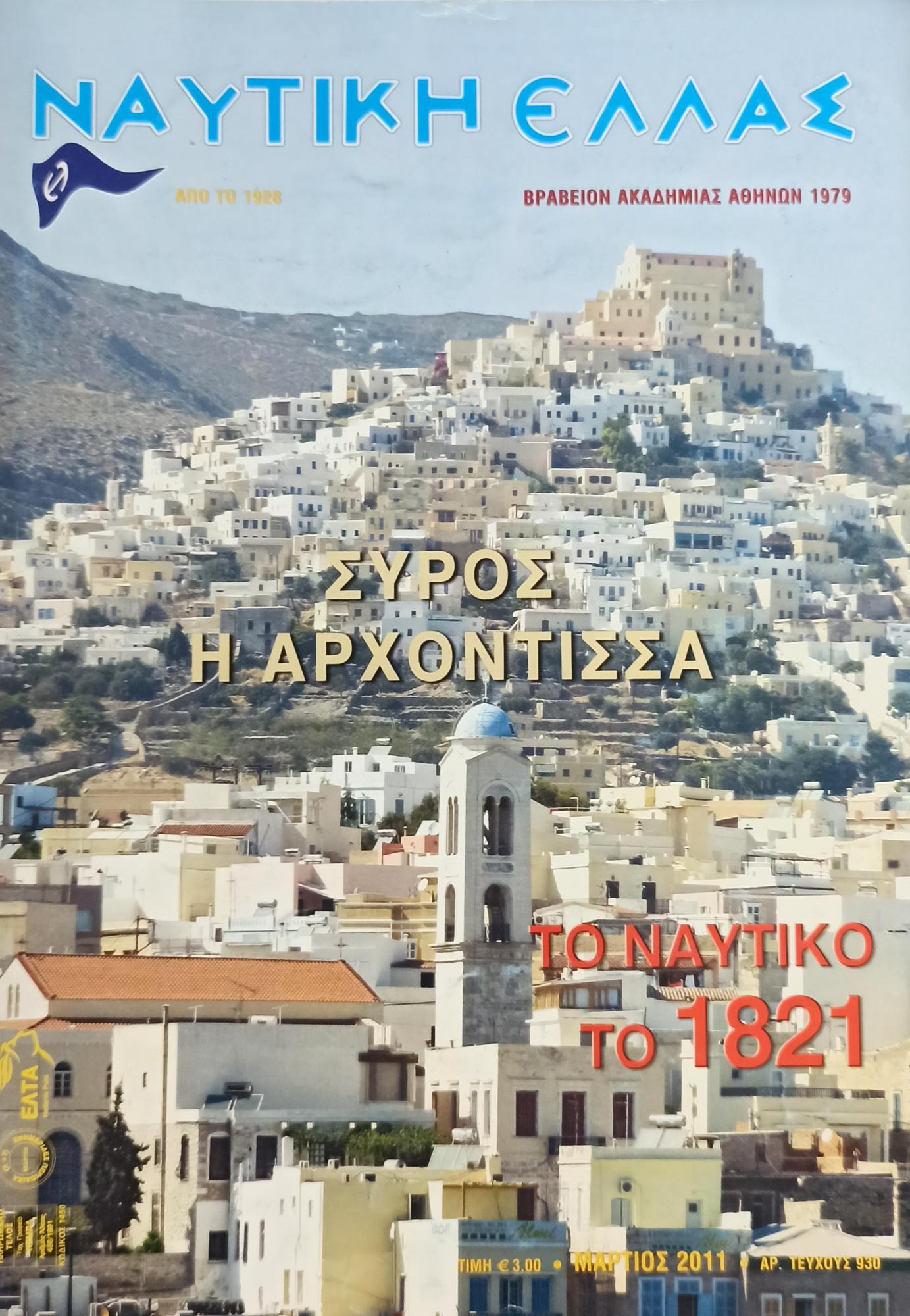 Είναι ένα θαυμάσιο Ναυτικό Περιοδικό που δημιουργήθηκε για χάρη των Ναυτικών το 1928. Ασχολήθηκε με ιδιαίτερη δραστηριότητα για τους ναυτικούς της Ελλάδας, τις ναυτιλιακές εταιρείες, τους Έλληνες Εφοπλιστές... αλλά τίμησε και τους Έλληνες στρατιώτες που, όπως έγραψε... “Στη διαδρομή τόσων χρόνων οι Έλληνες πέρασαν μέσα από πολέμους, νίκες, απογοητεύσεις, αλλά άντεξαν και κατόρθωσαν και νίκησαν αμέτρητες φορές την καταστροφή της χώρας. Στάθηκαν όρθιοι κουβαλώντας μια ιστορία γεμάτη δόξα και δάφνες. Και τι δεν χρωστά η Ελλάδα στα στρατευμένα παιδιά της! Από την αρχαία Ελλάδα μέχρι την νέα εποχή, υπάρχει η ιδέα ενός μνημείου για τους νεκρούς των πολέμων που δεν ήταν δυνατόν να αναγνωριστούν, αλλά τουλάχιστον να μην ξεχαστούν για την άριστη δραστηριότητά τους ώστε η Ελλάδα να είναι ελεύθερη. Το πρώτο μνημείο του Αγνώστου Στρατιώτου που δημιουργήθηκε στην Ελλάδα κατά τους μετ’ απελευθερωτικούς χρόνους και το οποίο φαίνεται ότι είναι το πρώτο παγκοσμίως, (έπειτα από τα παρόμοια μνημεία των αρχαίων μας προγόνων) είναι αυτό στην Ερμούπολη της Σύρου! Η ιδέα υποστηρίχθηκε επανειλημμένα από το Συριανό Τύπο και το Δημοτικό Συμβούλιο, μέχρις ότου ωρίμασε η σκέψη και στις 16 Ιανουαρίου 1858 ο Δήμος ανέλαβε τη δαπάνη ανέγερσης μνημείου προς τιμήν των “άταφων νεκρών της Ελληνικής Επανάστασης του 1821” στον υπερκείμενο της Ερμούπολης λοφίσκο αρχικά. Αργότερα το 1880, το μνημείο κατασκευάστηκε στον απέναντι από την πρόσοψη του Ναού της Αναστάσεως λοφίσκο και έφερε κοιμώμενο λιοντάρι στην κορυφή μαρμάρινης στήλης στη μετόπη της οποίας υπήρχε ανάγλυφη παράσταση της Ελλάδας. Το 1896 το μνημείο μεταφέρθηκε από ο λοφίσκο στο μικρό κηπάριο του Ναού του Αγίου Νικολάου της Ερμούπολης. Εκεί υπάρχει σήμερα. Πρώτοι που είχαν την ιδέα για την ίδρυση μνημείου για τον Άγνωστο Στρατιώτη ήταν οι Γάλλοι, μετά τον Ά Παγκόσμιο Πόλεμο, (40 περίπου χρόνια μετά το μνημείο της Σύρου) για να τους μιμηθούν κατόπιν και άλλα κράτη...” Κείμενο του αείμνηστου Ξ. Μαυρογιάννη .