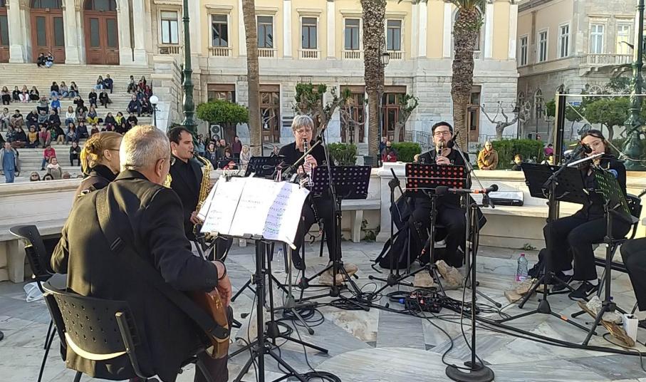 Χωρίς σύμμαχο τον καιρό πραγματοποιήθηκε η συναυλία της Φιλαρμονικής Ορχήστρας του Δήμου Σύρου Ερμούπολης το απόγευμα του Σαββάτου, στην ιστορική εξέδρα της πλατείας Μιαούλη. Αν και ο δυνατός αέρας δεν βόηθησε ιδιαίτερα το έργο των μουσικών και των τεχνικών του ήχου και το κρύο ήταν αποθαρρυντικό για τον κόσμο που ήθελε να παρακολουθήσει ολόκληρη τη συναυλία, το αποτέλεσμα ήταν αρκετά ικανοποιητικό, τουλάχιστον για αυτήν την πρώτη απόπειρα αναβίωσης της παλιάς Ερμουπολίτικης συνήθειας.