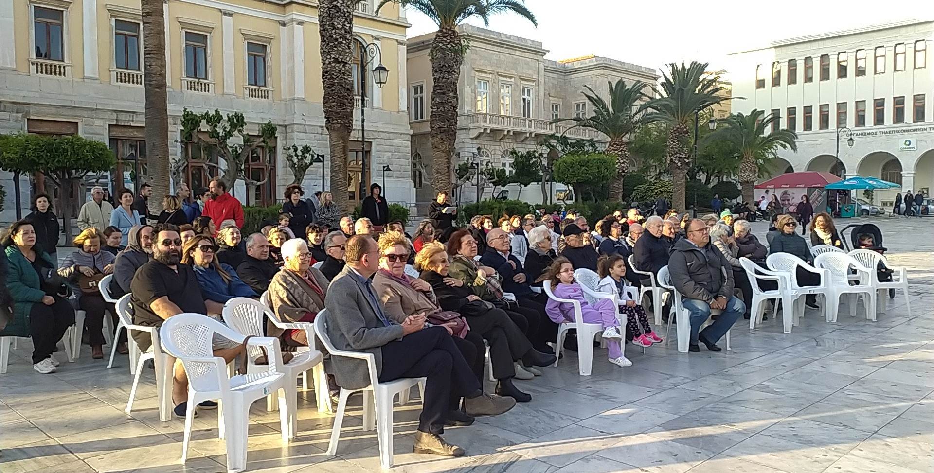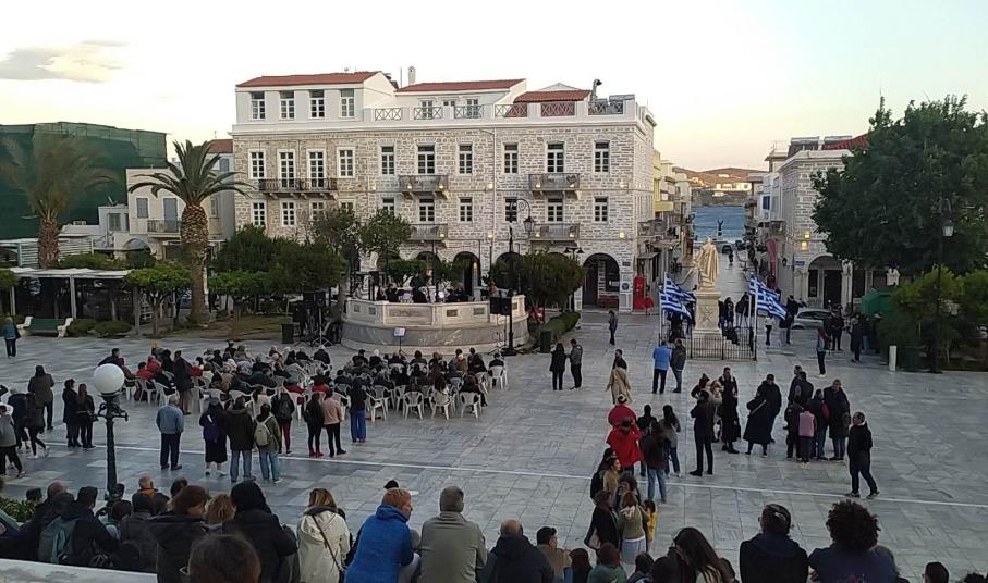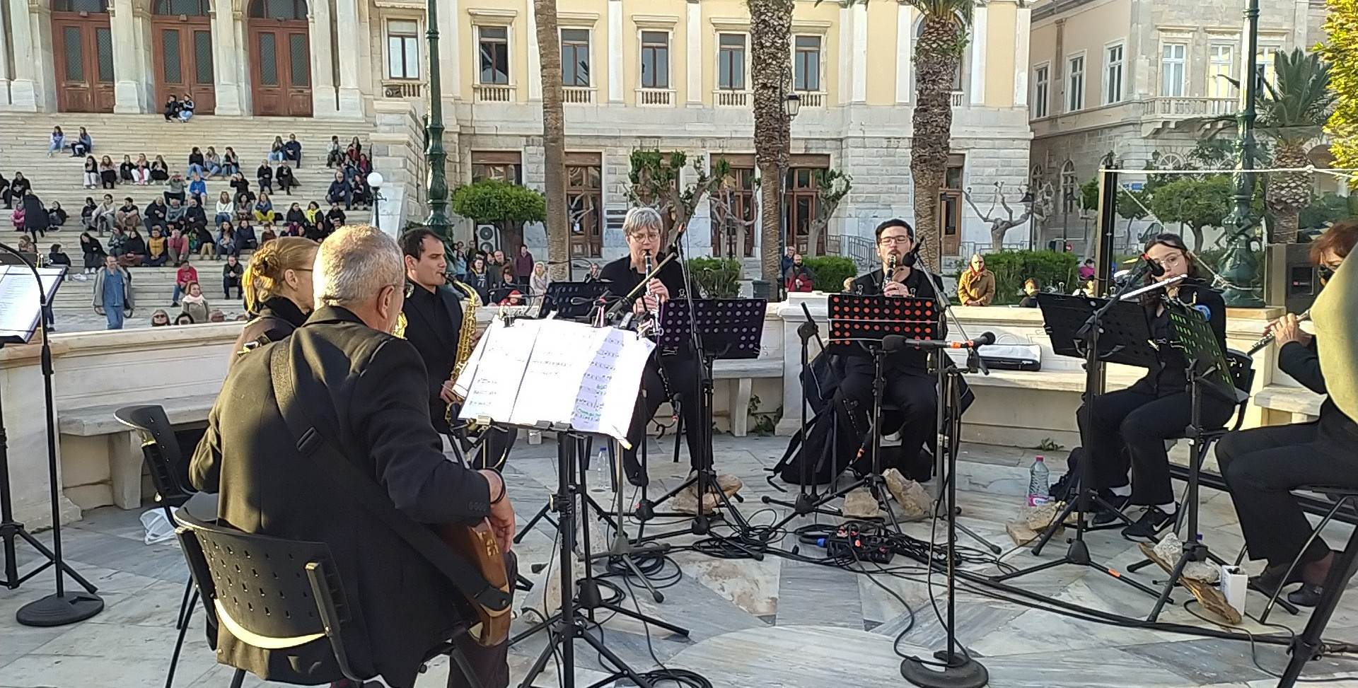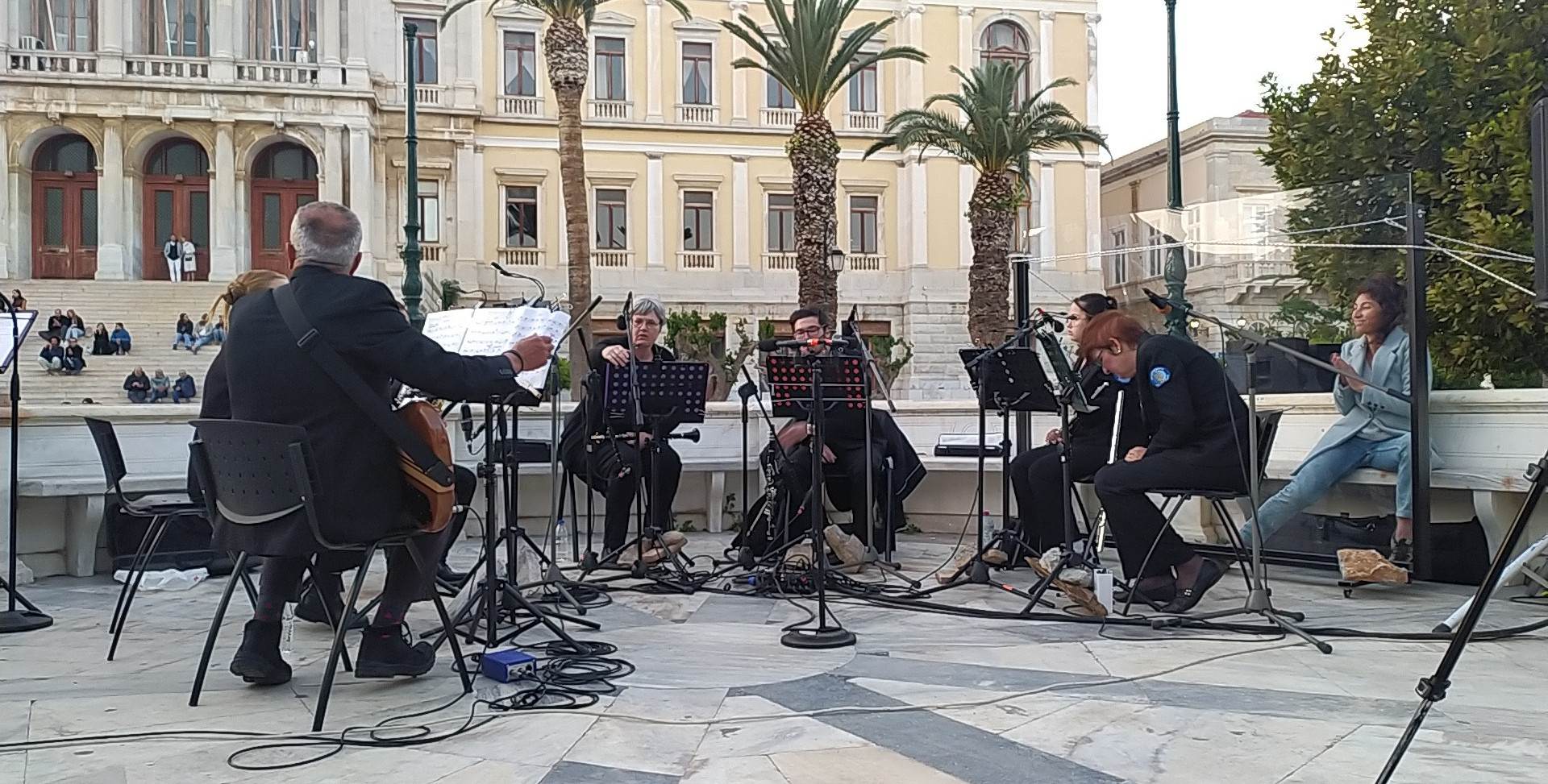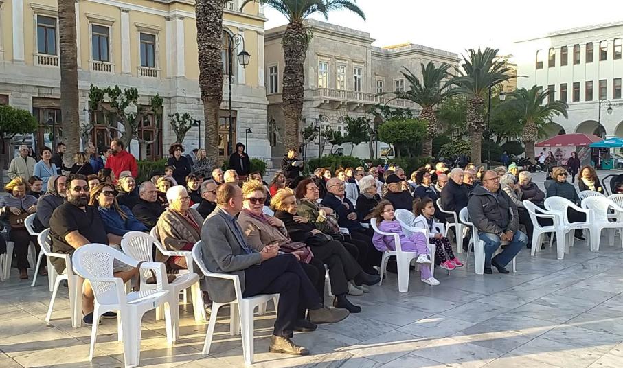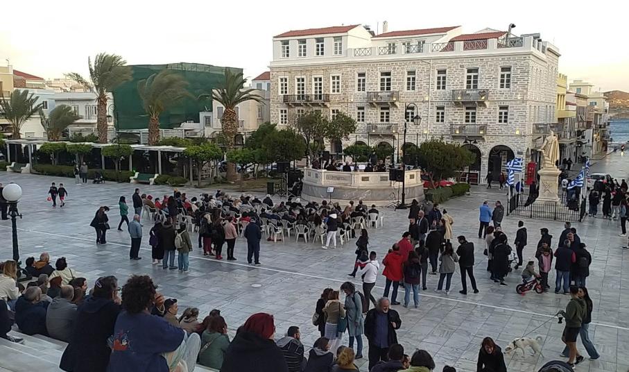 Η συναυλία άρχισε λίγο μετά τις 19.00 και διήρκησε λίγο περισσότερο από μία ώρα. Οι πρώτοι που κατέφθασαν, καθώς και οι μεγαλύτεροι σε ηλικία, παρακολούθησαν τη συναυλία από τις πλαστικές καρέκλες που είχαν τοποθετηθεί μπροστά από την εξέδρα, ενώ αρκετός κόσμος, ανάμεσά τους και πολλά παιδιά, απόλαυσαν τη μουσική δράση από τα σκαλιά του Δημαρχείου. Ωστόσο, ο κόσμος που παρευρέθηκε, ήταν αρκετά λιγότερος από τον αναμενόμενο, δεδομένου ότι αντίστοιχη δράση είχε πολλά χρόνια να πραγματοποιηθεί στη Σύρο, με την, μοναδικής ομορφιάς και ακουστικής, εξέδρα να μένει ανεκμετάλλευτη επί δεκαετίες.