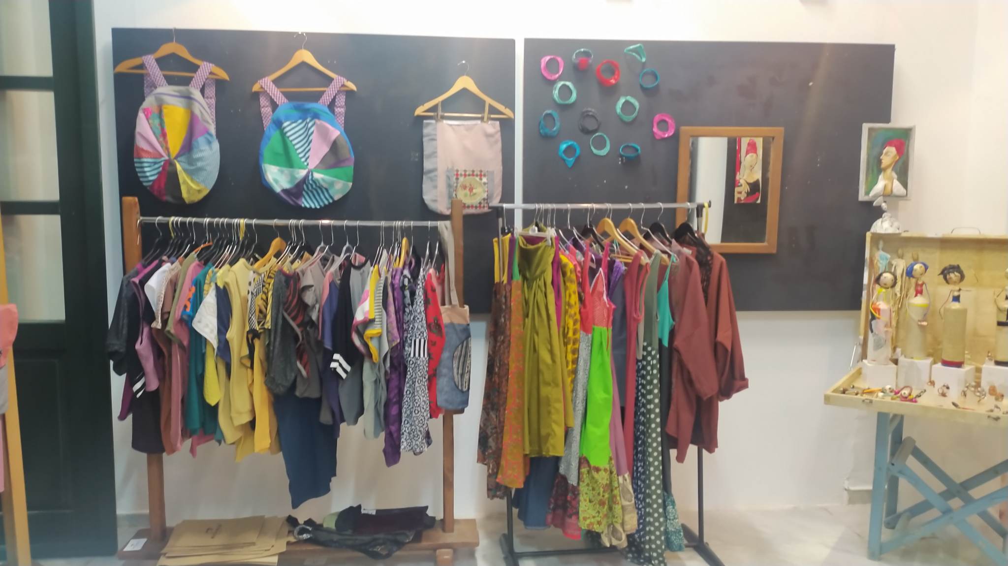 Η Μιρέλλα Μιχαήλ, η Κασσιανή Χατζηαγγέλου, η Μαρία Βίλογλου, η Ιωάννα Χρυσικοπούλου, η Ναταλία Σκούρα και η Κλωντιάνα Τσαμάτη με κοινό τόπο συνάντησης τη Σύρο αλλά και τη μητρότητα, αποφάσισαν να εκθέσουν τα δημιουργήματα της τέχνης ή/και της τεχνικής με την οποία οι περισσότερες άρχισαν να ασχολούνται μετά την απόκτηση των παιδιών τους, όπως φανερώνει και ο τίτλος της έκθεσης. Τσάντες, ρούχα, υφασμάτινα αξεσουάρ, πίνακες, κοσμήματα, καλλυντικά, σαπούνια, κούκλες και πολλά ακόμα διακοσμητικά είδη, όλα χειροποίητα και με οικολογικά κυρίως υλικά, εκτίθενται σε μία συλλογική έκθεση που αποτελεί αφορμή για ενδιαφέρουσες καλλιτεχνικές και κοινωνικές συναθροίσεις με εναλλακτικό χαρακτήρα, προσφέροντας χρώμα και ζωντάνια στα σοκάκια του οικισμού.