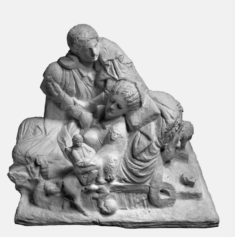 Η παρούσα έκθεση Χαλεπάς – Γλυπτικής μέγιστον μάθημα από 11 Ιουνίου έως 16 Οκτωβρίου 2023 έρχεται να ενώσει κατά κύριο λόγο αυτά τα δύο εξαιρετικά σημαντικά σύνολα για το έργο του καλλιτέχνη, τη συλλογή του Ι.ΤΗ.Π. και τη συλλογή έργων του Ιδρύματος Ωνάση (συνολικά περισσότερα από 40 γλυπτά). Και στις δύο συλλογές περιλαμβάνονται έργα της πρώτης (εποχής της Κοιμωμένης) και κυρίως της δεύτερης περιόδου (Τήνου) του Χαλεπά. Σημαντικά έργα από την πρώτη περίοδο του καλλιτέχνη (1868-1878) που ‘επιστρέφουν’ στην Τήνο για να συναντήσουν τη Φιλοστοργία, που εκτίθεται στην Τήνο, είναι το περίφημο πορτρέτο της αδελφής του Κατερίνας, η προτομή του Δημητρίου Πολιορκητή, καθώς και η μικρή κεφαλή Κόρης (η τελευταία από τη συλλογή του Γιάννη Γαΐτη), έργα που τον συντρόφευαν όταν επέστρεψε στο νησί μετά το ψυχιατρείο της Κέρκυρας (1902-1930) και έδωσαν το έναυσμα για πολλές μετέπειτα δημιουργίες του σε Τήνο και Αθήνα. Σημαντικότατα είναι τα έργα από την περίοδο της Τήνου στο Ίδρυμα Ωνάση, το Παραμύθι της Πεντάμορφης σε πηλό, Η Γενοβέφα και οι Δήμιοί της (πηλός), ο Εκατόγχειρ (γύψος), καθώς και δύο νέα αποκτήματα του Ιδρύματος Ωνάση, το Μυστικό (γύψος, προ του 1927) και το πορτρέτο της Καλλιόπης Παπαδημητρακοπούλου (γύψος π. 1924).