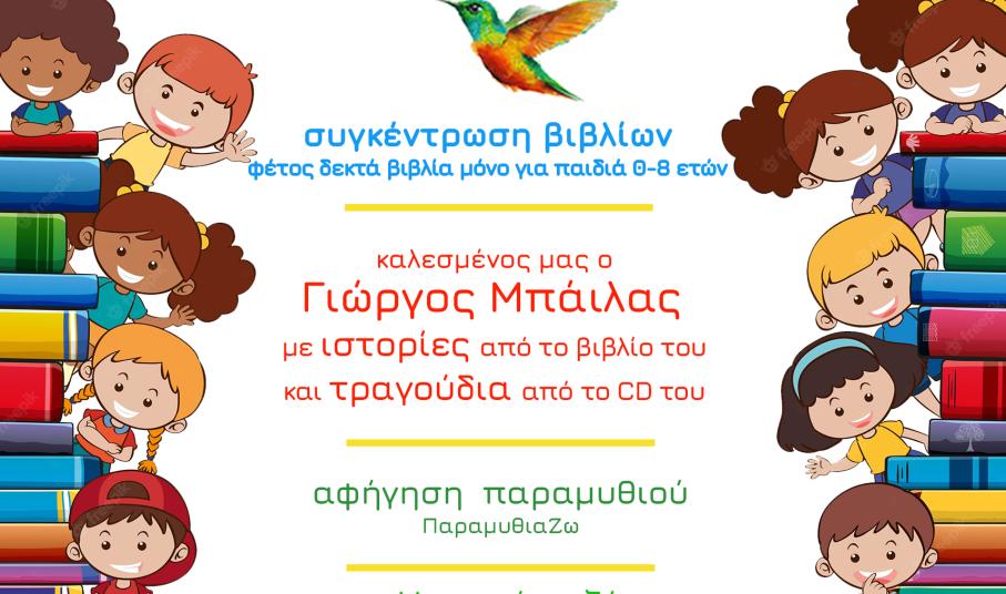 Διαδραστική παρουσίαση βιβλίου, όπου η βιβλιοθήκη θα υποδεχτεί τον συγγραφέα και συνθέτη Γιώργο Μπάιλα, που θα πει μια ιστορία από το βιβλίο του «Παραμύθια» που είναι από τα πρώτα βιβλία που δωρίστηκαν στη Βιβλιοθήκη, μόλις εκδόθηκε, το 2021! Ακόμα, θα τραγουδήσει παιδικά τραγούδια που έχει συνθέσει ο ίδιος. Μετά την παρουσίαση, θα κληρωθούν βιβλία και CD, δώρα του δημιουργού.