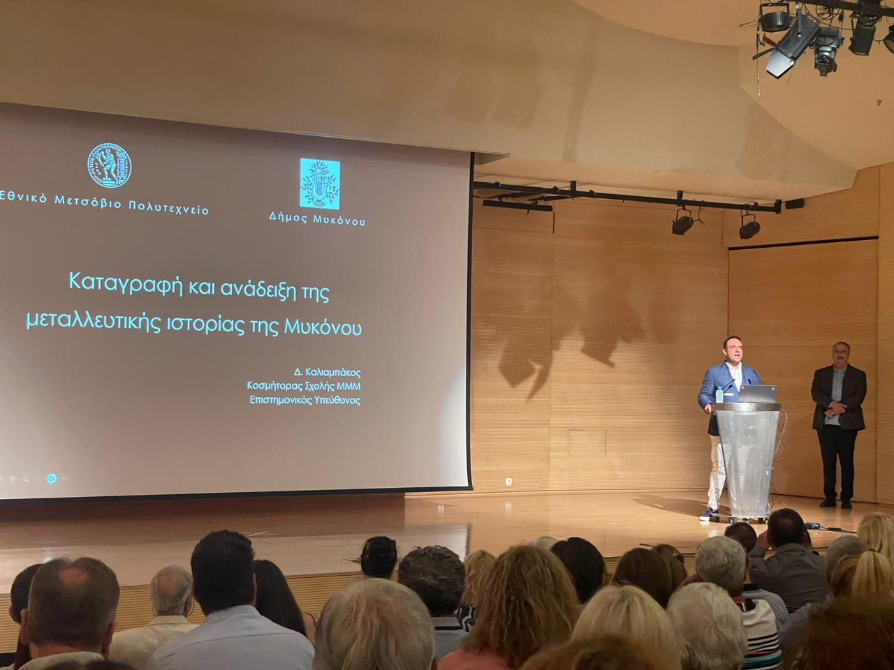Με μεγάλη επιτυχία και πλήθος κόσμου να δίνει το "παρών", πραγματοποιήθηκε το Σάββατο 17 Ιουνίου στο αμφιθέατρο του μουσείου Μπενάκη, μία εκδήλωση αφιερωμένη στην μεταλλευτική ιστορία της Μυκόνου, με γενικό τίτλο, «Μεταλλεία Μυκόνου - μια ιστορία στο φως» που συνοψίζει τα αποτελέσματα του ερευνητικού προγράμματος του Εθνικού Μετσόβιου Πολυτεχνείου "Καταγραφή και Ανάδειξη της Μεταλλευτικής Ιστορίας της Μυκόνου", βασισμένου στο Αρχείο της Δήμητρας Λοΐζου-Βουλγαράκη.