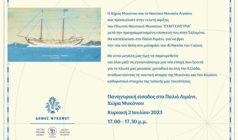 Το Ναυτικό Μουσείο Αιγαίου και ο Δήμος Μυκόνου σας ενημερώνουν και σας προσκαλούν να το επισκεφτείτε!