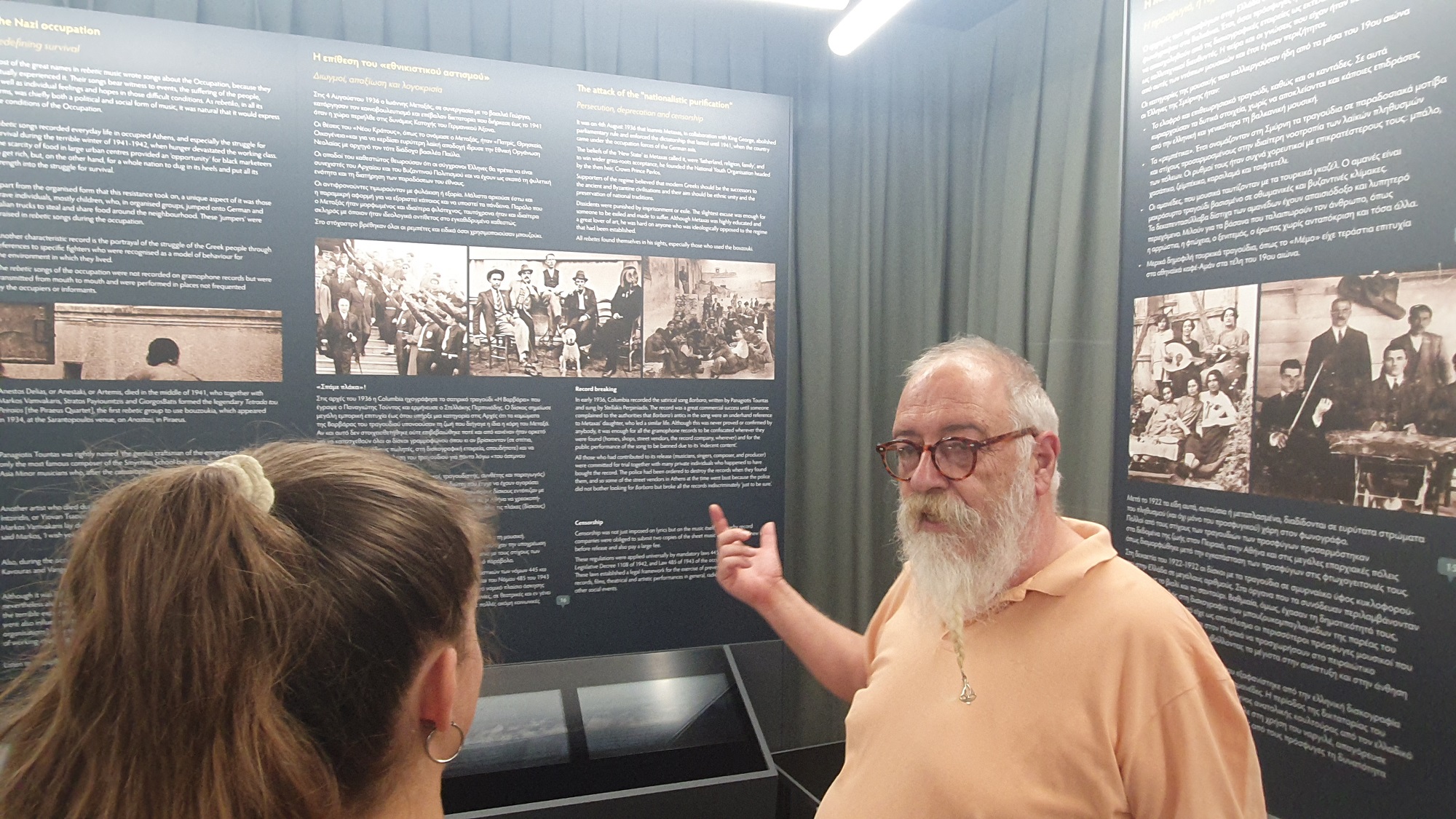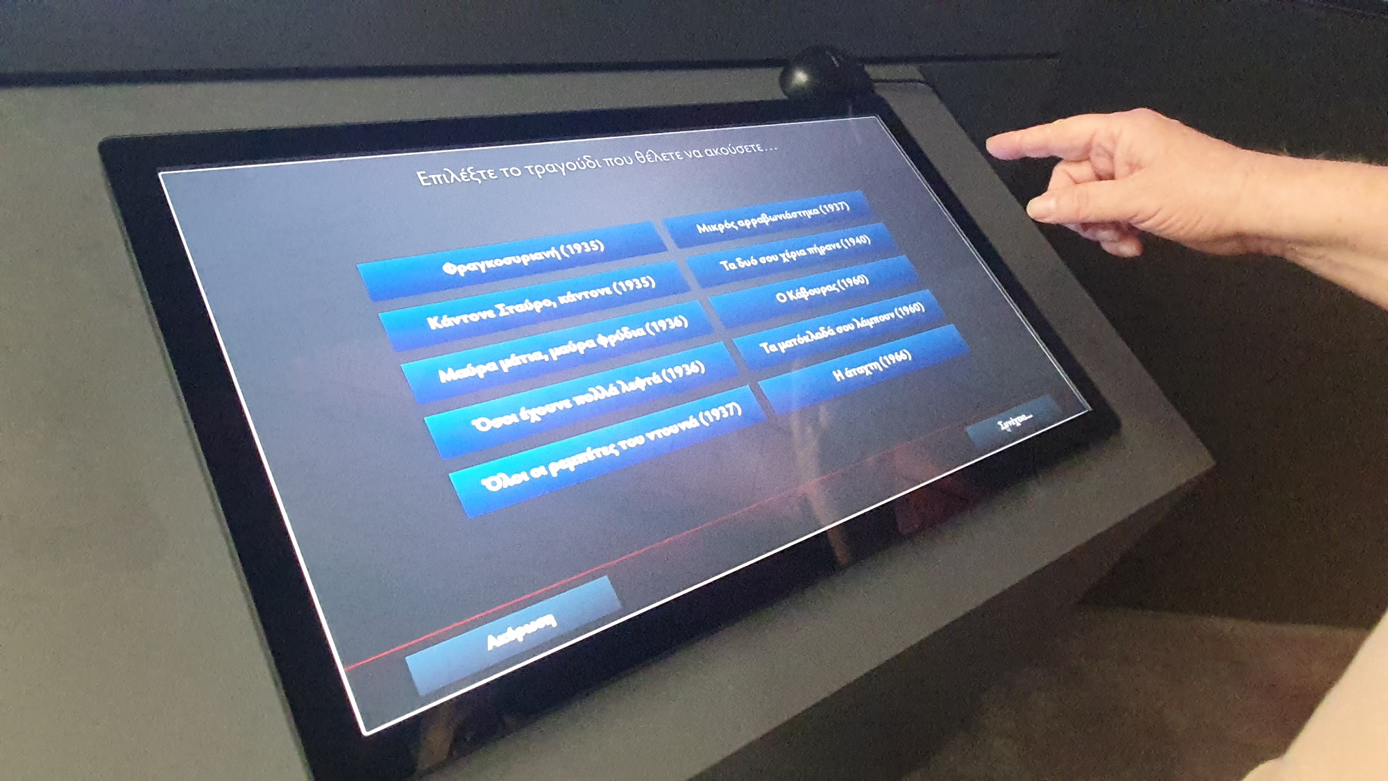 Η εμπειρική επαφή με 10 από τα σημαντικότερα τραγούδια του Βαμβακάρη γίνεται από ένα σύστημα πολυμέσων, το οποίο χειρίζεται ο επισκέπτης καθορίζοντας τις προτιμήσεις λειτουργίας του. Εφόσον ο επισκέπτης το επιθυμεί, μπορεί να επιλέξει ένα από τα βασικά όργανα του τραγουδιού της επιλογής του και να συνοδεύσει την αναπαραγωγή του. Επίσης, μπορεί να επιλέξει η συμμετοχή του να μαγνητοσκοπηθεί. Το υλικό αυτό, μετά από τυπικό έλεγχο μπορεί να αναρτηθεί στο διαδίκτυο. Η αναπαραγωγή των τραγουδιών συνοδεύεται από την προβολή ειδικών για κάθε τραγούδι video clip που επιχειρούν να παρουσιάσουν το συναισθηματικό, ιστορικό και μουσικό περιεχόμενο του επιλεγμένου τραγουδιού. Η εφαρμογή λειτουργεί σε δύο γλώσσες, ελληνικά και αγγλικά. Ο επισκέπτης έχει τη δυνατότητα να προμηθευτεί από την είσοδο της έκθεσης, ένα ειδικό μηχάνημα-"ξεναγό" όπου μπροστά σε κάθε πάνελ, θα μπορεί να πληκτρολογήσει διαφορετικό αριθμό, για να ακούσει πιο αναλυτικά, την ιστορία της εκάστοτε θεματικής ενότητας.