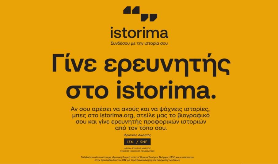 Αφηγητές είσαστε όλοι εσείς κι η μοναδική σας ιστορία. Όλοι είμαστε κομμάτι της μεγαλύτερης Ιστορίας, είμαστε η Ιστορία αυτού του τόπου κι η ιστορία του καθενός είναι σημαντική και πρέπει να διασωθεί. Το Istorima θα συλλέξει 20.000 προφορικές ιστορίες.