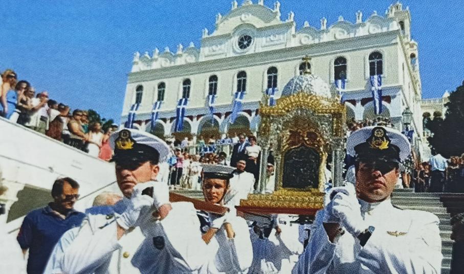 Τήνος – Παναγία η Μεγαλόχαρη. Ο Ιερός Ναός Ευαγγελιστρίας της Τήνου, κτίστηκε σε σημείο όπου βρέθηκε η εικόνα της Παναγίας, μετά από οράματα της μοναχής Αγίας Πελαγίας. Η εικόνα ανακαλύφθηκε μετά από ανασκαφές στις 30 Ιανουαρίου 1823. Εκεί ανακάλυψαν και τον αρχαίο ναό του Διονύσου, αλλά και τον ναό του Αγίου Ιωάννου Προδρόμου.