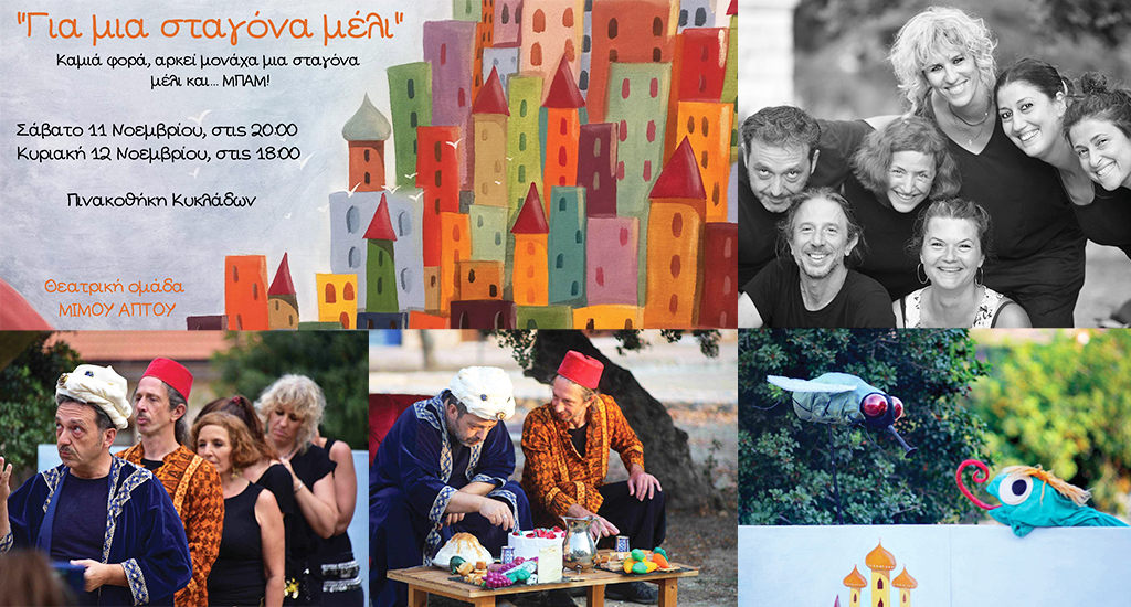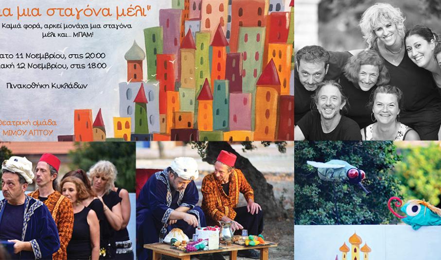 "Για μια σταγόνα μέλι" είναι και ο τίτλος της θεατρικής παράστασης που θα ανεβάσει η ομάδα “Μίμου Άπτου” στις 11 και 12 Νοεμβρίου, στην Πινακοθήκη Κυκλάδων.