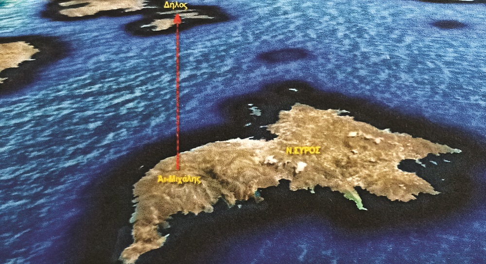 Από Γερούσι, κι από το οποίο φαίνεται ο Ήλιος να ανατέλλει από τη Δήλο, προέκυψε ο παρακάτω χάρτης. Επάνω και μέσα στον κύκλο βρίσκονται συνολικά δώδεκα νησιά, όσα υπολογίζονταν στην αρχαιότητα οι Κυκλάδες. Προκύπτει δηλαδή, ότι ονόμαζαν τα νησιά Κυκλάδες, όχι επειδή ήταν σε κύκλο γύρω από τη νήσο Δήλο, αλλά γύρω από την Σύρο και συγκεκριμένα από το λόφο της Άνω Σύρου, που, πριν κατοικηθεί, ονομαζόταν Μεσοβούνι.