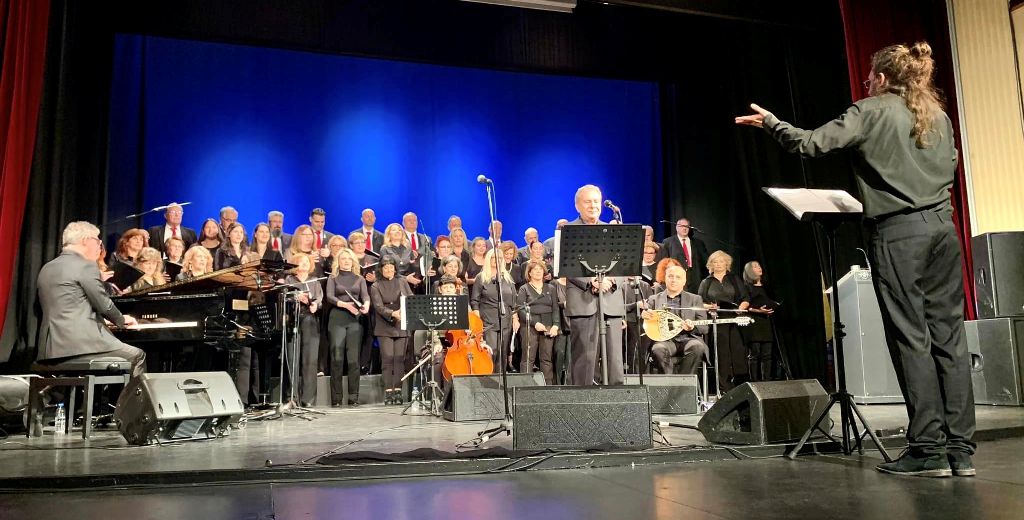 Μάλιστα, στο δεύτερο μέρος της συναυλίας, η χορωδία του Ομίλου συνόδευσε τον ερμηνευτή σε 10 χορωδιακά τραγούδια, δημιουργώντας μία μοναδική ατμόσφαιρα.