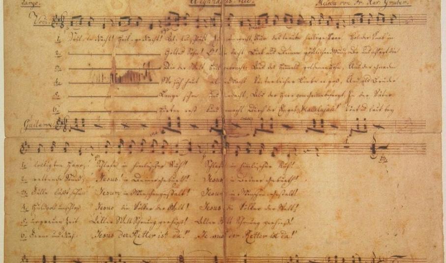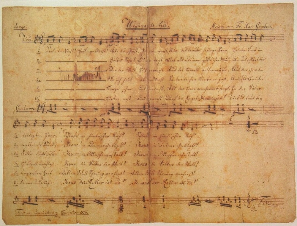 Στο Μουσείο του Σάλτσμπουργκ, στην Αυστρία, φυλάσσεται σαν πολύτιμος θησαυρός μια κιθάρα. Δεν είναι ούτε η πρώτη, ούτε η ακριβότερη κιθάρα του κόσμου. Ούτε ανήκε σε κάποιον μεγάλο μουσουργό. Είναι μια απλή, μια κοινή συνηθισμένη κιθάρα, που μ' αυτήν παίχθηκε για πρώτη φορά το ωραιότερο μουσικό “τραγούδι” του κόσμου, το πανανθρώπινο χριστουγεννιάτικο τραγούδι: “Άγια Νύχτα...”.