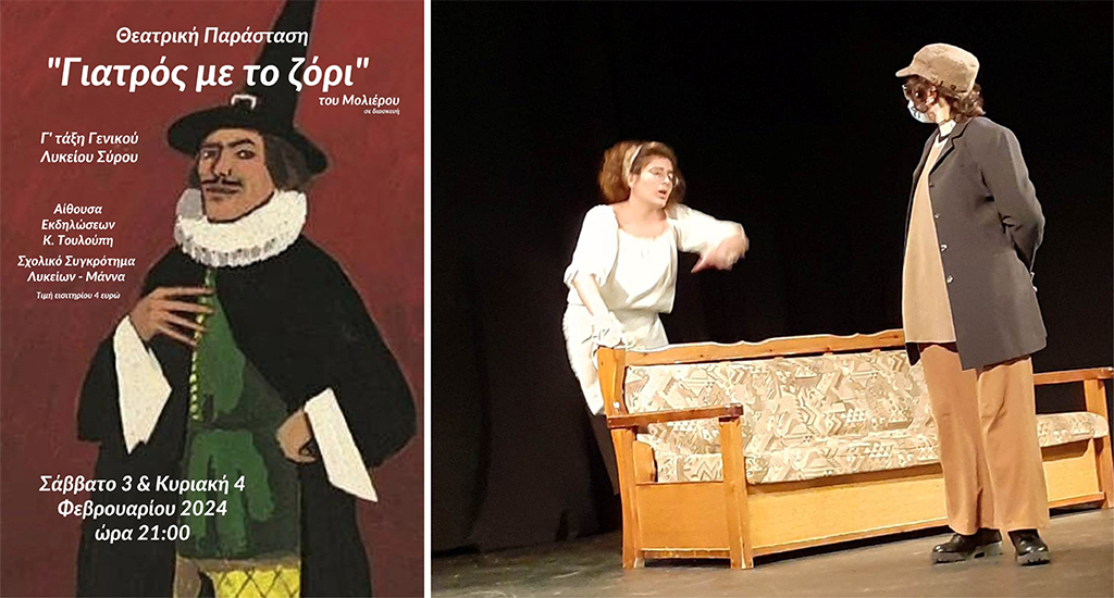 Σε σκηνή θεάτρου θα μετατραπεί το επόμενο Σαββατοκύριακο, 3 και 4 Φεβρουαρίου, η αίθουσα εκδηλώσεων «Κ. Τουλούπη» στο σχολικό συγκρότημα του Μάννα, καθώς θα υποδεχθεί το έργο “Γιατρός με το ζόρι” του Μολιέρου.