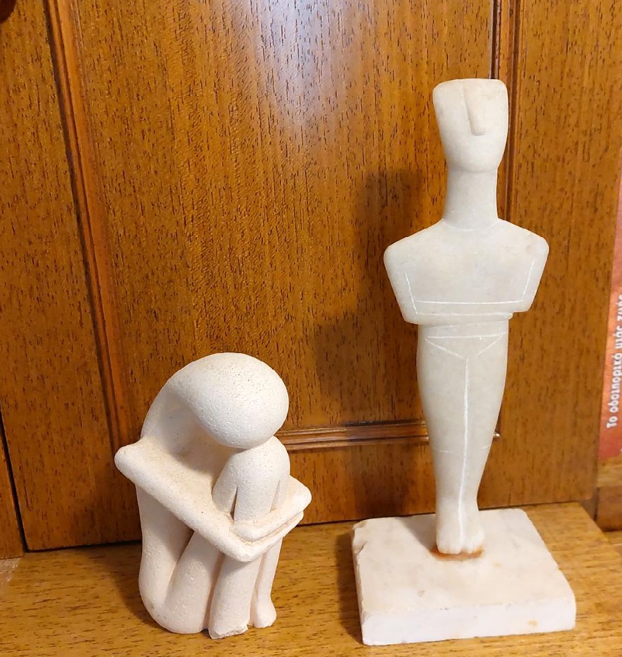 Τα ειδώλια αφιερώματα των Κυκλαδιτών στους νεκρούς τους, είναι όλα κατασκευασμένα από τους αρχαίους Έλληνες, με κάτασπρο Παριανό μάρμαρο. Αποτελούν τη μεγαλύτερη και πολυτιμότερη προσφορά του Κυκλαδικού πολιτισμού στην τέχνη πριν 5.000 χρόνια. Στην πρώτη φάση ανήκουν τα εντελώς σχηματικά ειδώλια. Ο καλλιτέχνης προσπαθεί να αποδώσει την ανθρώπινη φιγούρα με ένα περίγραμμα που συμβολίζει το ανθρώπινο σώμα. Πανέμορφα είναι και τα ανδρικά ειδώλια που έχουν παρουσιαστεί όπως: ο κυνηγός ή πολεμιστής, ο αυλητής, ο καθιστός σε θρόνο αρπιστής και ο καθιστός που παρουσιάζεται να πίνει, (ίσως το κρασί σου), με προβολή του χεριού. Για τις ανάγκες της καλλιέργειας και άλλων δραστηριοτήτων ο Κυκλαδίτης κατασκεύασε πολλά εργαλεία από πέτρα ή... από τον περίφημο ΟΨΙΑΝΟ, την μαύρη σκληρή πέτρα της Μήλου. Από τον ΟΨΙΑΝΟ, έφτιαξε και το πρώτο του ξυράφι.
