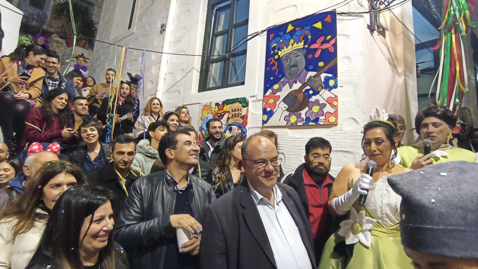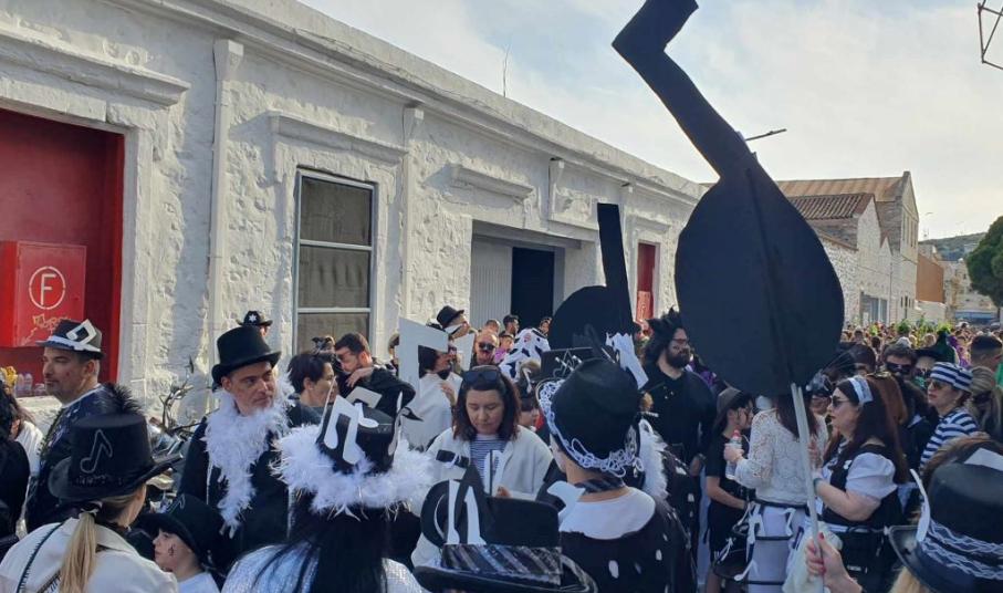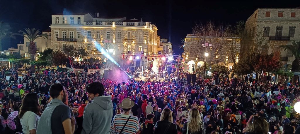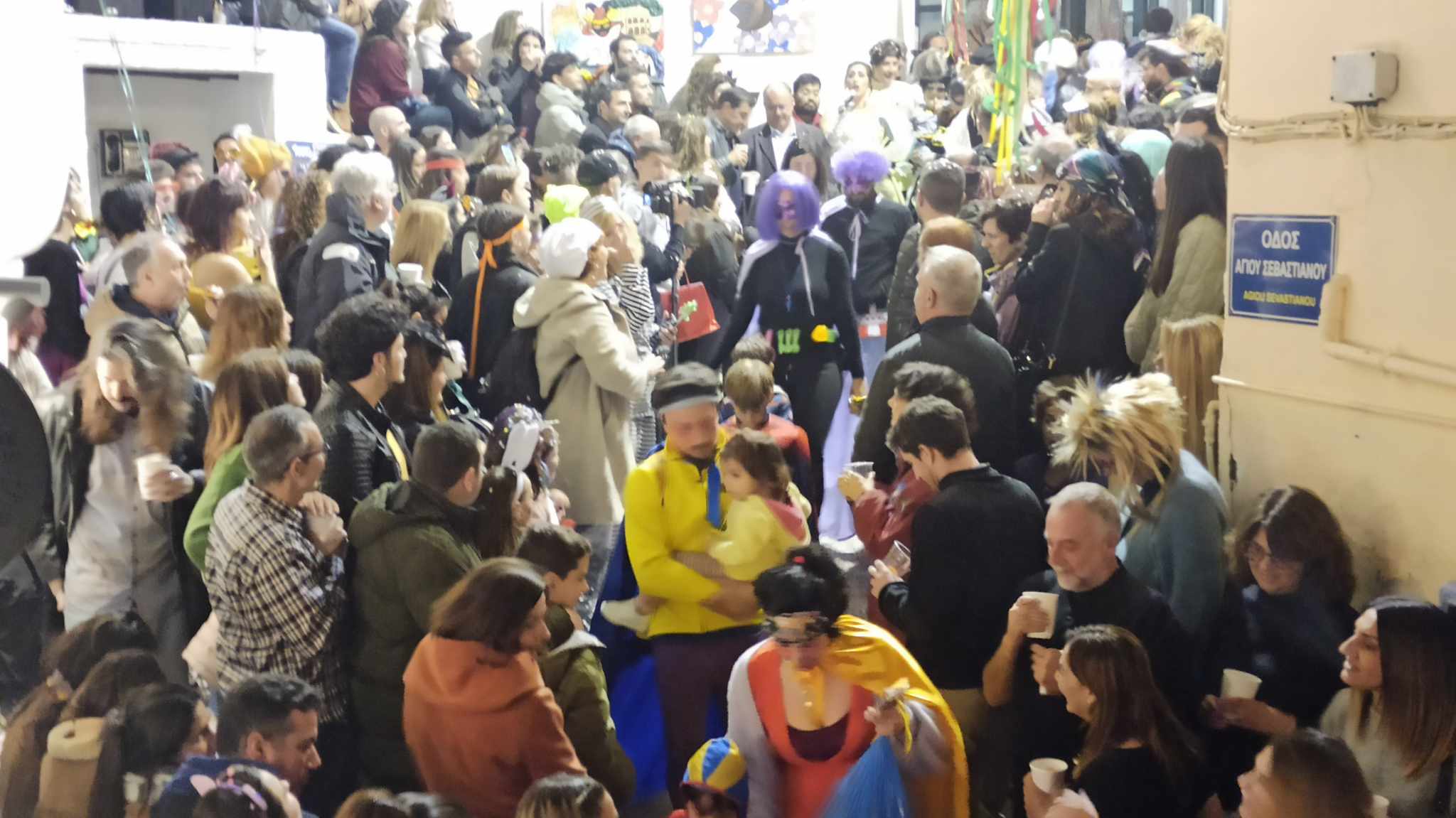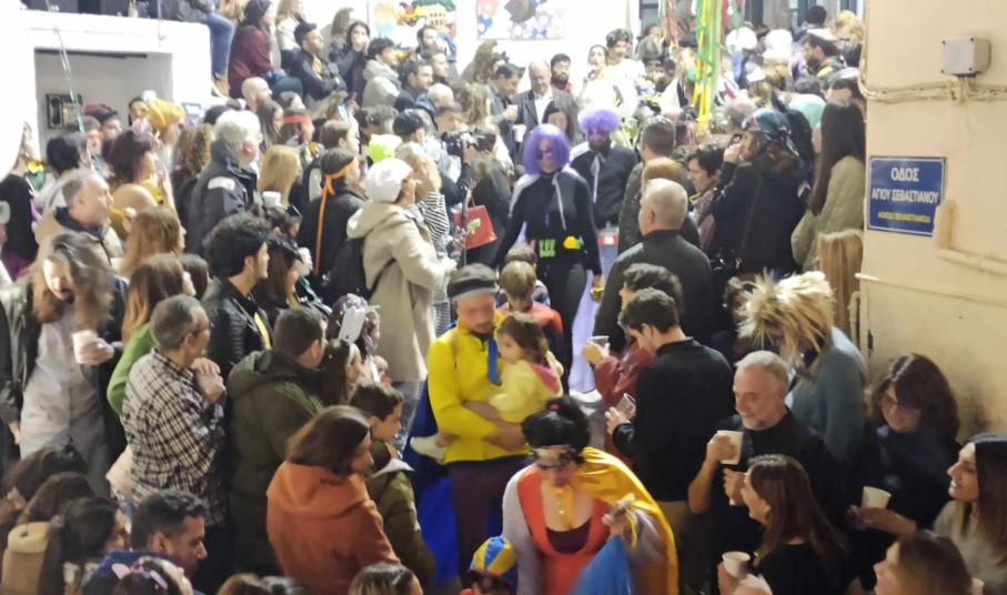 Τα σοκάκια του κυριολεκτικά πλημμύρισαν ασφυκτικά από κόσμο όλων των ηλικιών, που είχαν στήσει από νωρίς μία μεγάλη αποκριάτικη γιορτή, με μουσική και χορό.