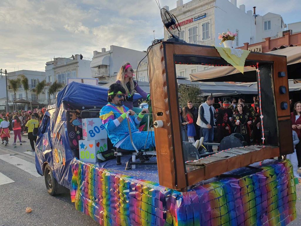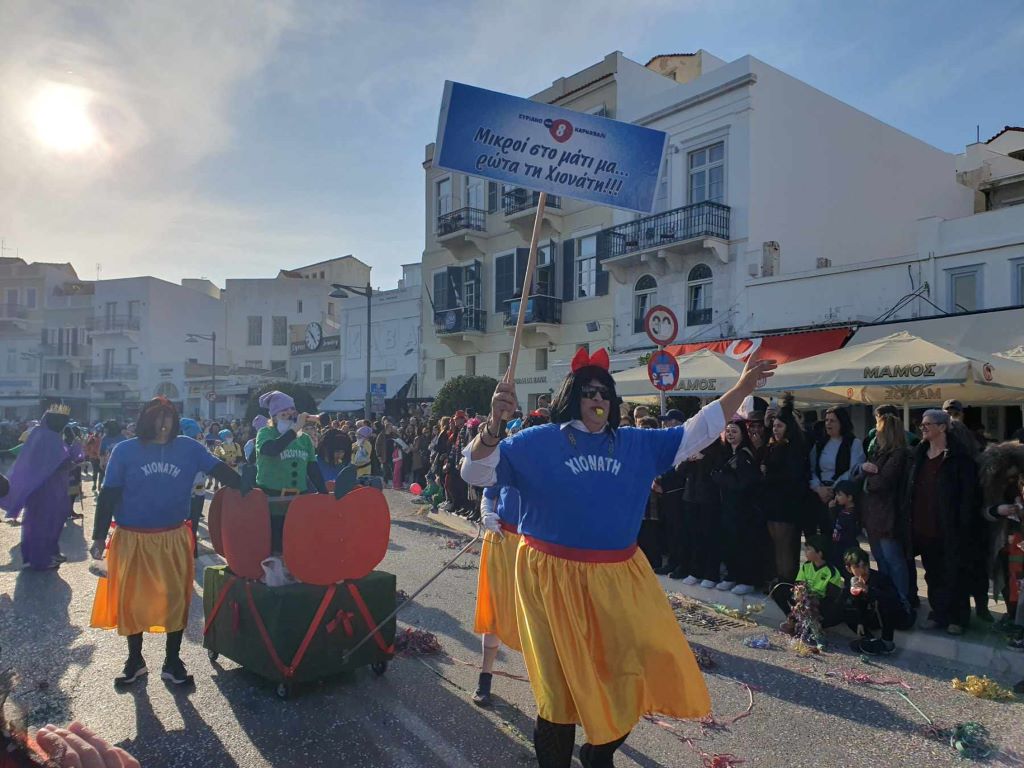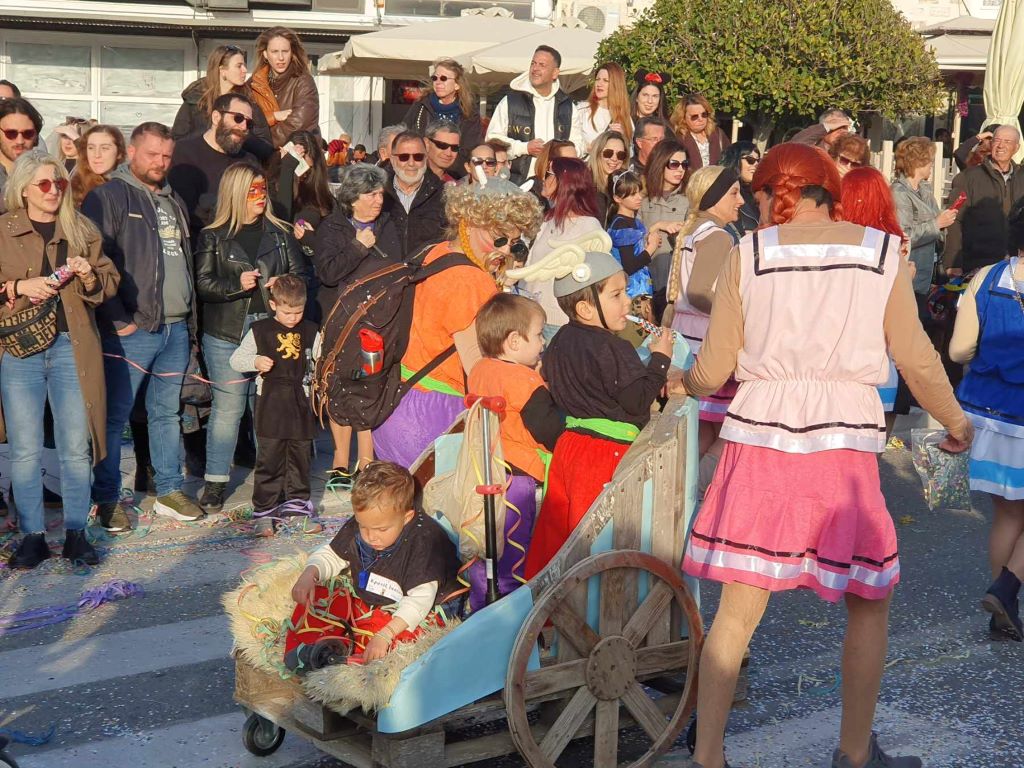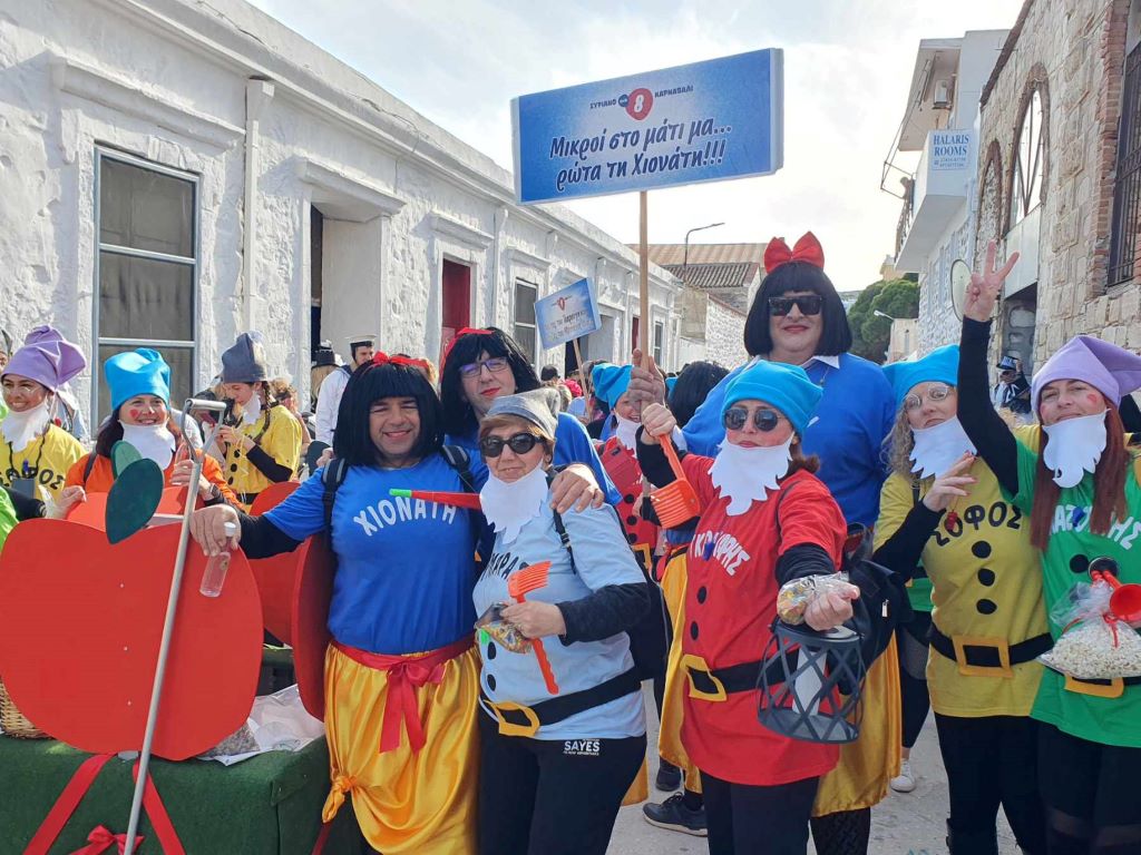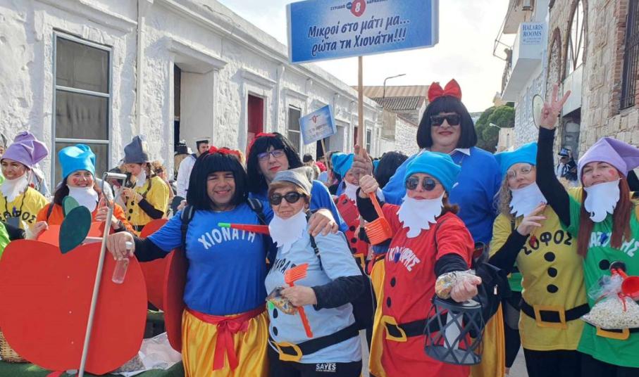 Τα σοκάκια του κυριολεκτικά πλημμύρισαν ασφυκτικά από κόσμο όλων των ηλικιών, που είχαν στήσει από νωρίς μία μεγάλη αποκριάτικη γιορτή, με μουσική και χορό.