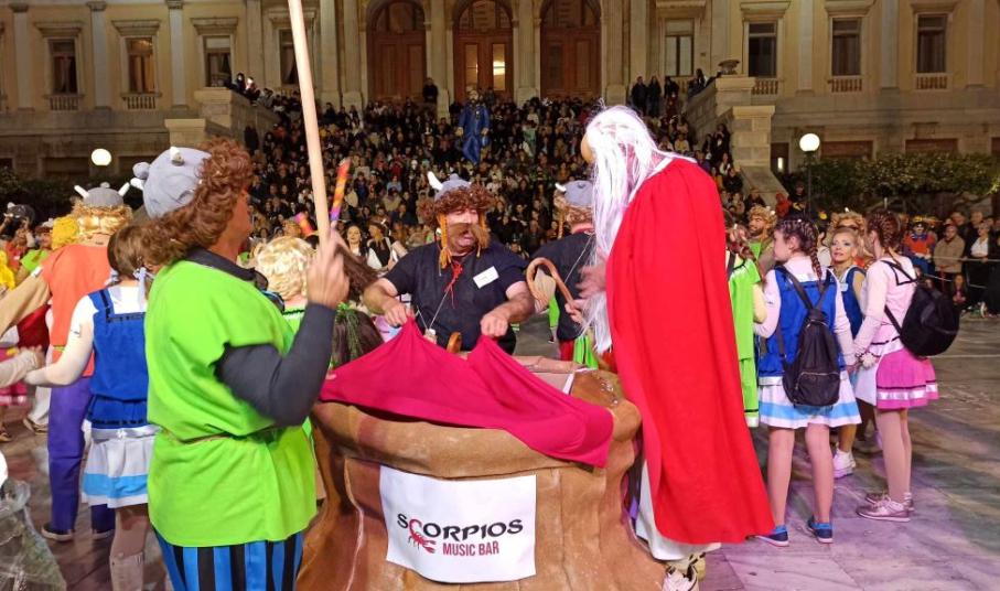 Κατά τη διάρκεια της μεγάλης γιορτής, που είχε στηθεί στην πλατεία Μιαούλη, έγιναν και τα "αποκαλυπτήρια" των καλύτερων ομάδων του φετινού καρναβαλιού.