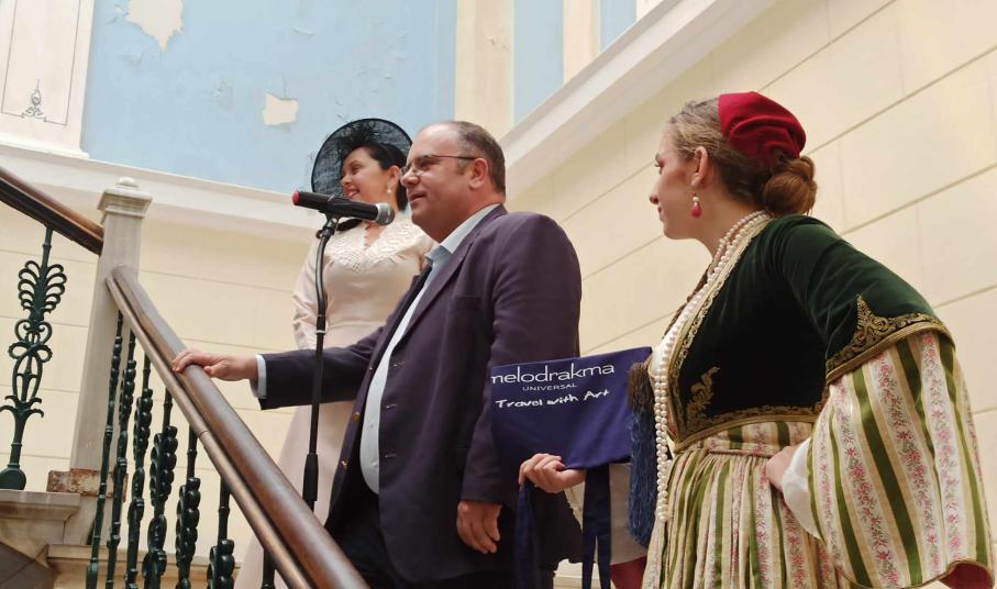 Συγκεκριμένα, το Σάββατο το μεσημέρι, στο δημαρχιακό μέγαρο, με τη συνδρομή της Παιδικής - Νεανικής Χορωδίας της Ορχήστρας των Κυκλάδων και του Λυκείου των Ελληνίδων, η Δημοτική Αρχή, υποδέχθηκε περί τα 250 άτομα από την Αθήνα, την Άρτα, την Κρήτη, τη Θεσσαλονίκη, τον Βόλο, την Άνδρο και την Πάρο, που ταξίδεψαν στη Σύρο μέσω του γραφείου ταξιδιωτικών εμπειριών "Melodrakma Universal" που οργανώνει θεματικά ταξίδια σε όλο τον κόσμο.