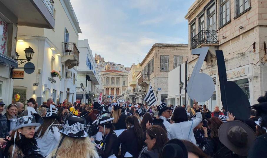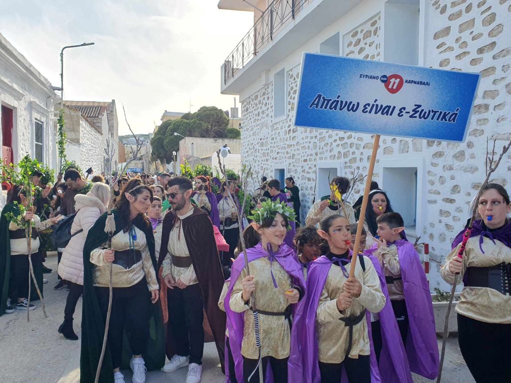 Τα στενά σοκάκια της Άνω Σύρου, αλλά και οι δρόμοι της Ερμούπολης, πλημμύρισαν με εκατοντάδες καρναβαλιστές από τη Σύρο, αλλά και εκτός αυτής, μετατρέποντας ολόκληρο το νησί σε ένα μεγάλο πολύχρωμο πάρτι.