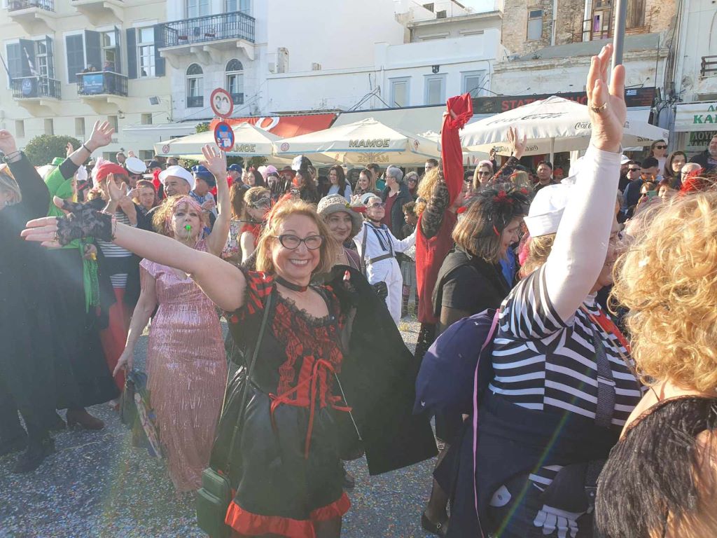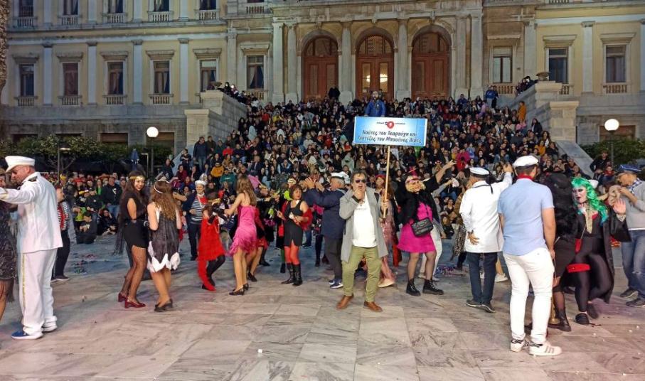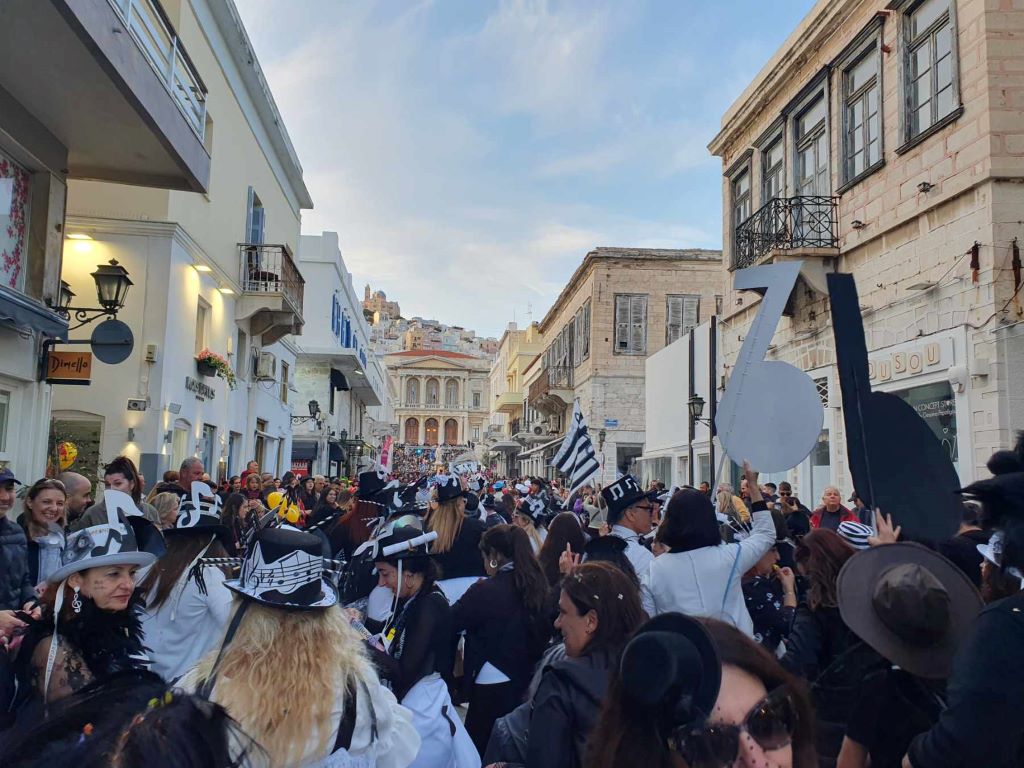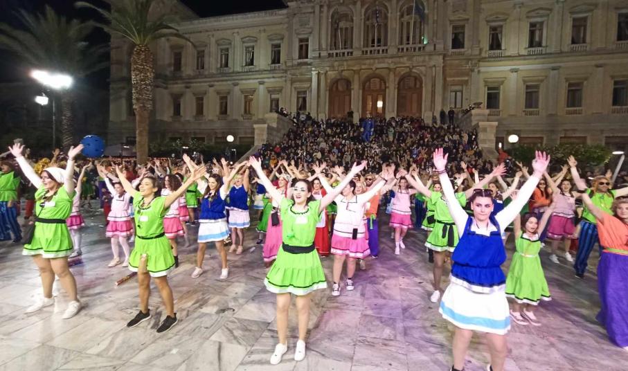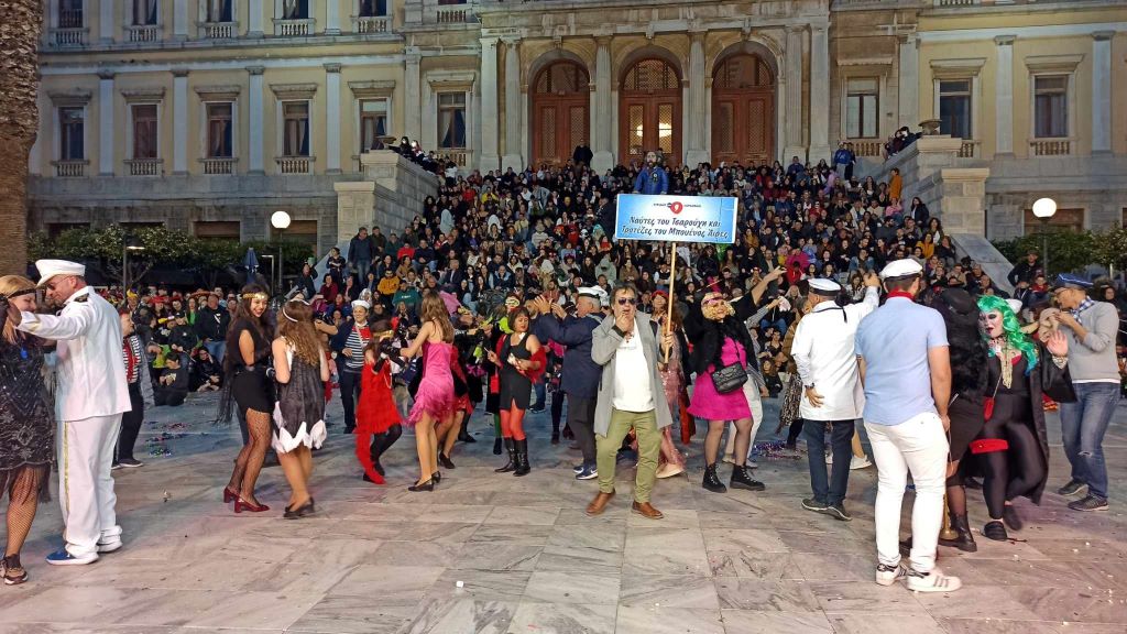 Με την υποδοχή των ομάδων εκτός Σύρου που επισκέφθηκαν το νησί για το τριήμερο της αποκριάς, άρχισαν στην ουσία οι καρναβαλικές εκδηλώσεις στο νησί.