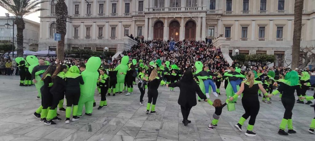 Στους ξέφρενους ρυθμούς των καρναβαλικών εκδηλώσεων έλαβαν μέρος οκτώ άρματα, 16 ομάδες με πάνω από 1.500 μέλη, αλλά και δεκάδες επισκέπτες που επισκέφθηκαν τη Σύρο για να διασκεδάσουν το τριήμερο των απόκρεω.
