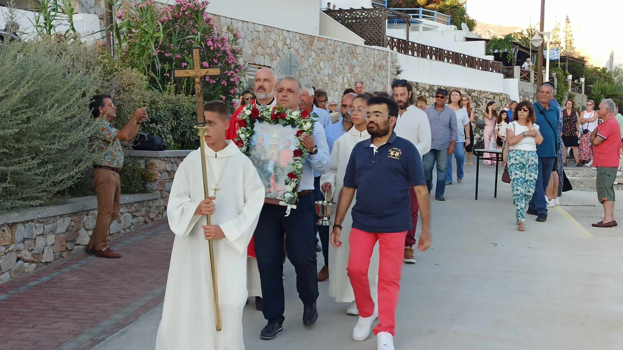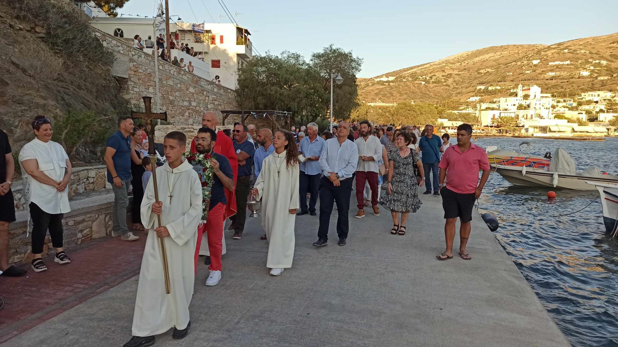 Νωρίς το απόγευμα πραγματοποιήθηκε με τη συμμετοχή πλήθος κόσμου, αλλά και εκπροσώπων της Τοπικής Αυτοδιοίκησης, η τέλεση της θείας λειτουργίας στο μικρό ομώνυμο εκκλησάκι του Αγίου Πέτρου που βρίσκεται ακριβώς πάνω από τη θάλασσα.
