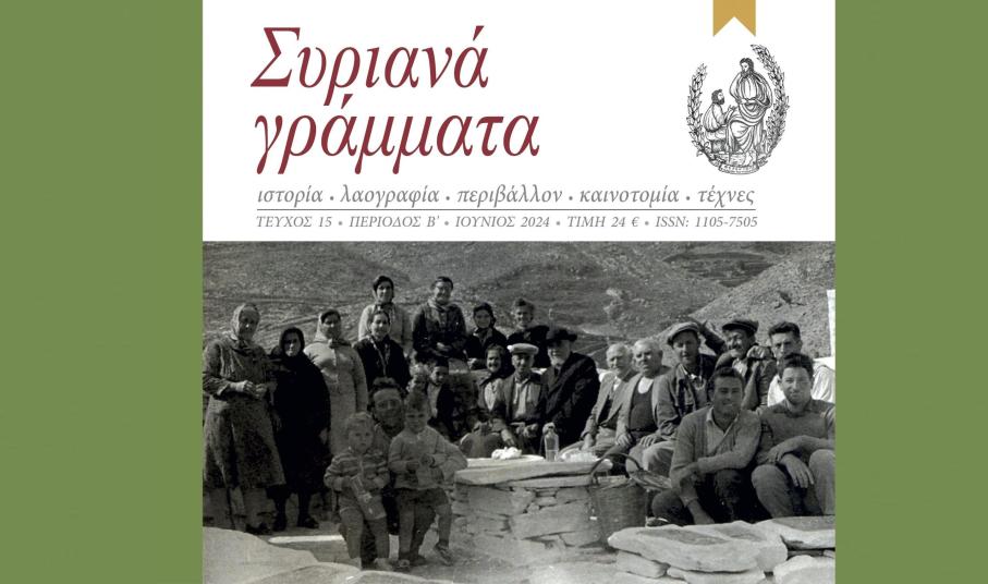 Στη ζωή και κυρίως στην αγροτική δραστηριότητα των κατοίκων της Σύρου είναι αφιερωμένο το 15ο τεύχος της έκδοσης των “Συριανών Γραμμάτων”, που κυκλοφορεί στα βιβλιοπωλεία, με τη “σφραγίδα” του Δημήτρη Βαρθαλίτη.